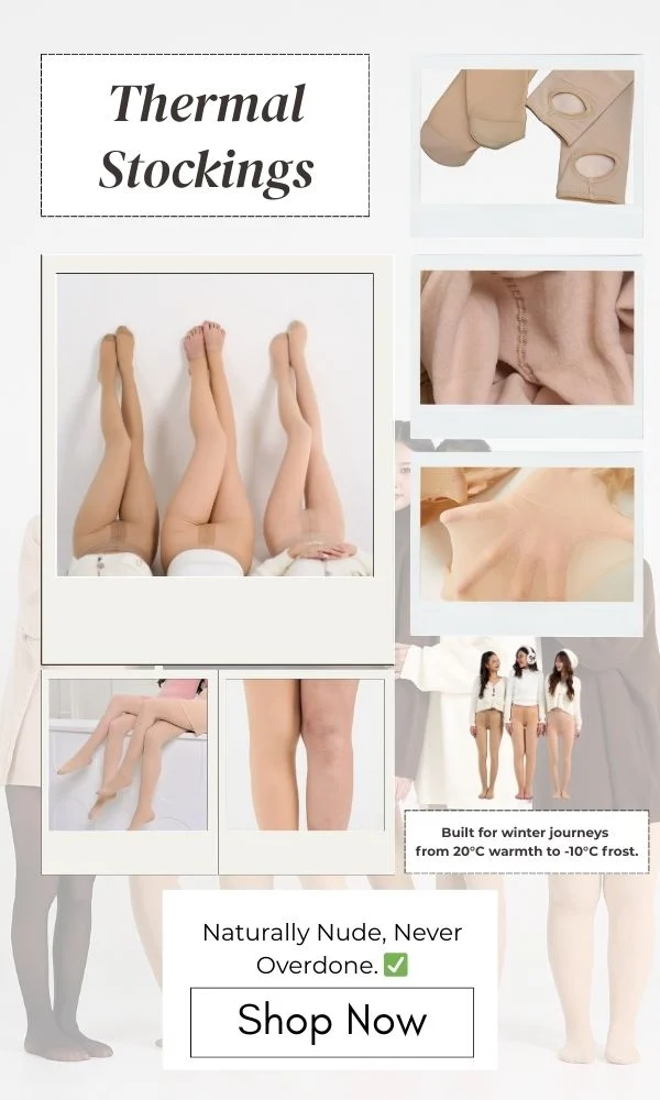 Skinny Warm – Sheer thermal stockings with light fleece lining, suitable for 0–15°C.