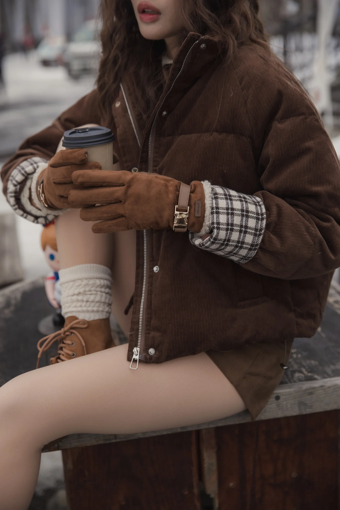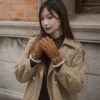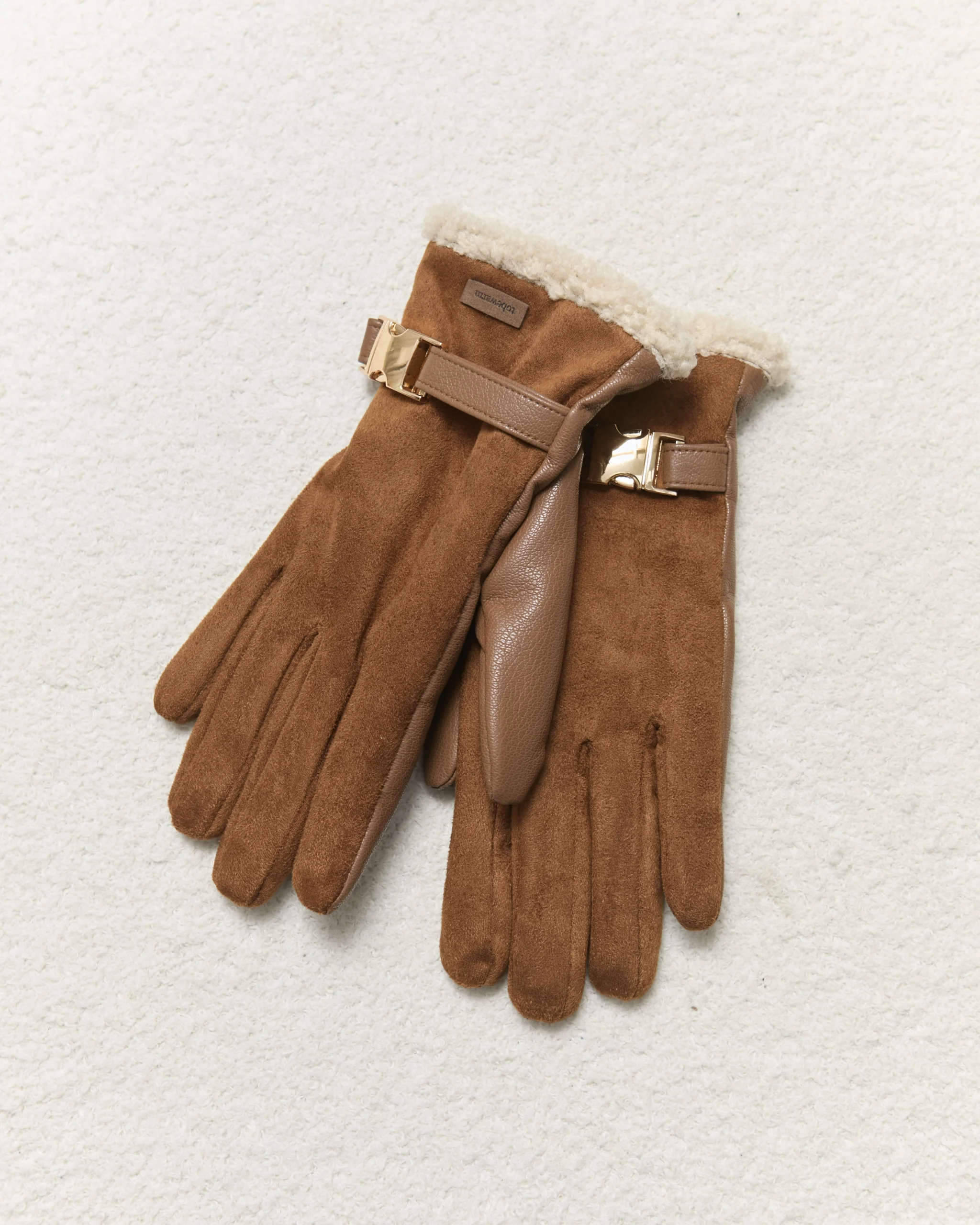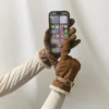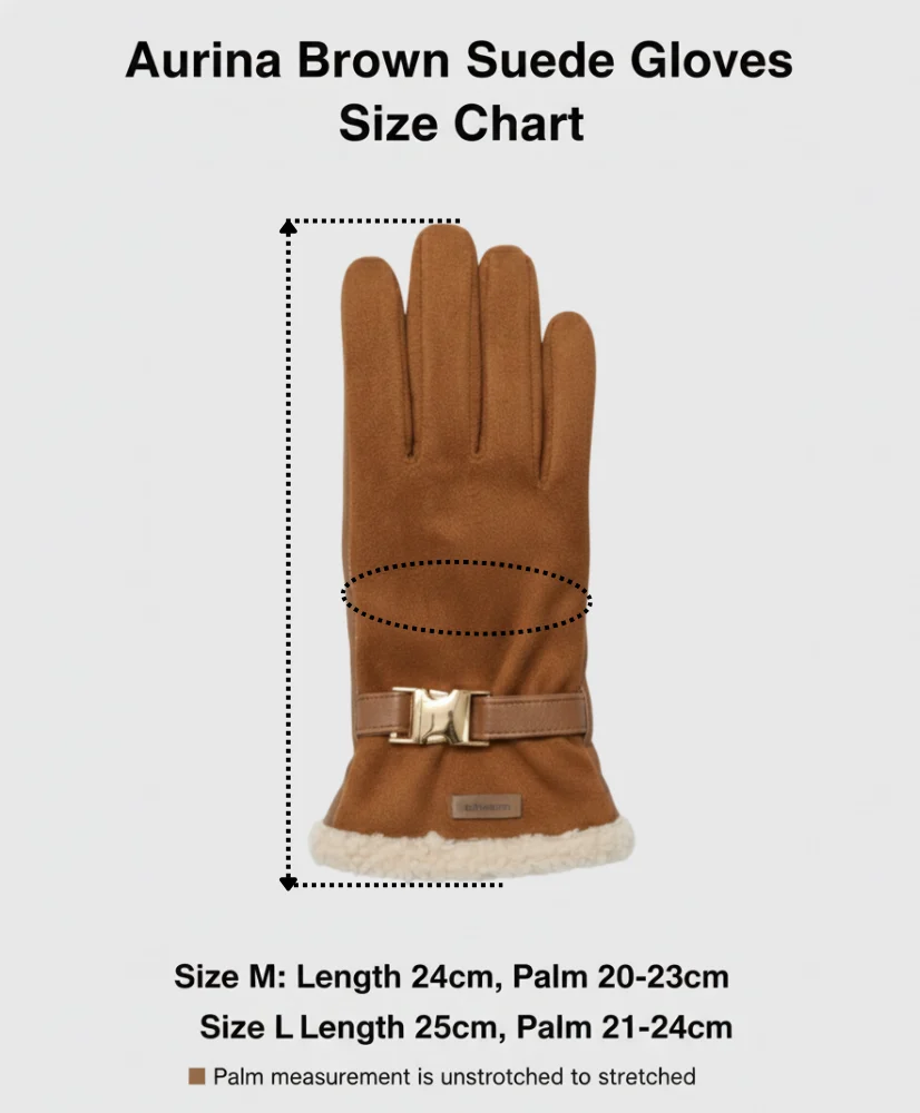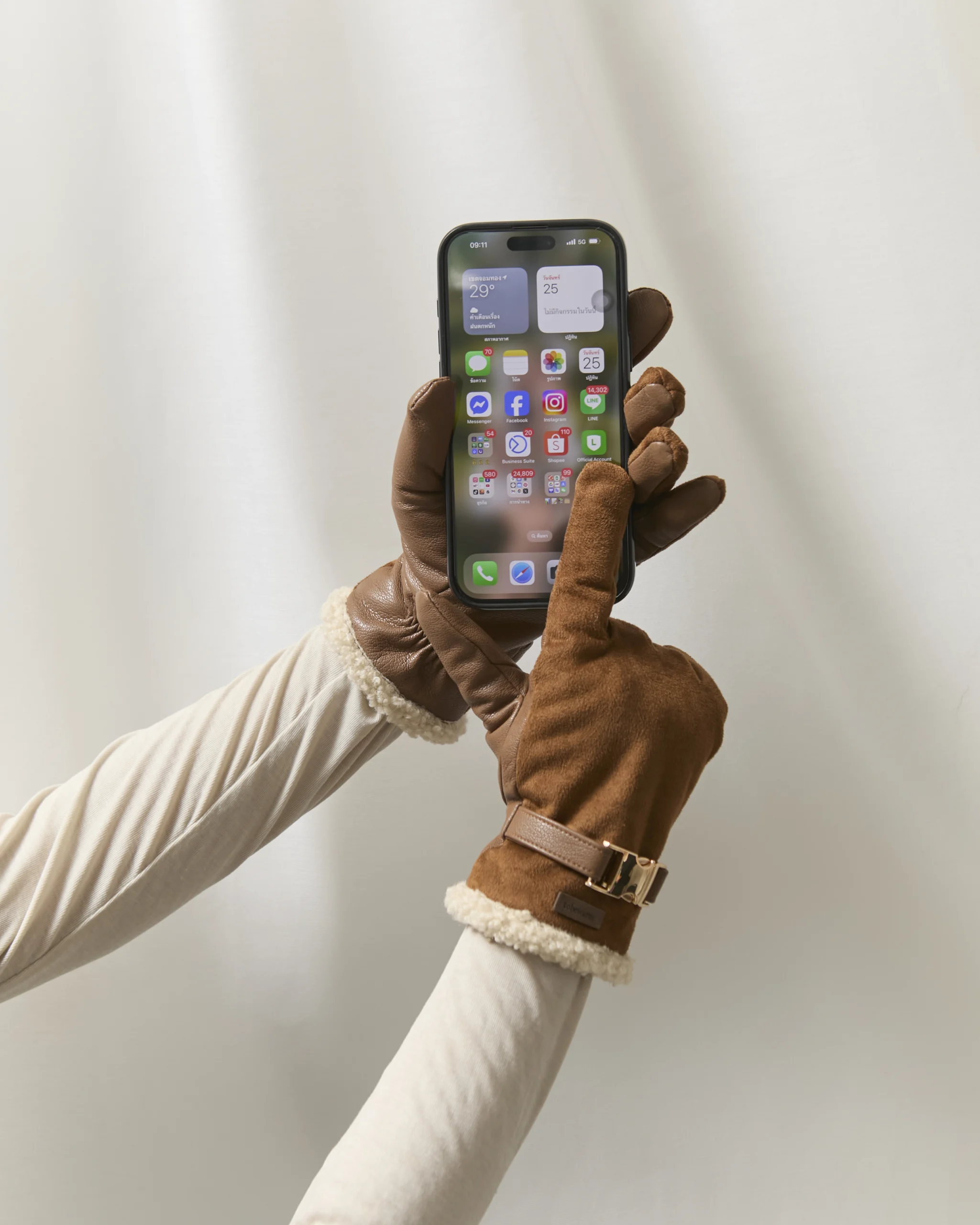 Aurina Brown Suede Gloves – All-Fingers Touchscreen Suede Gloves with Fleece Lining.