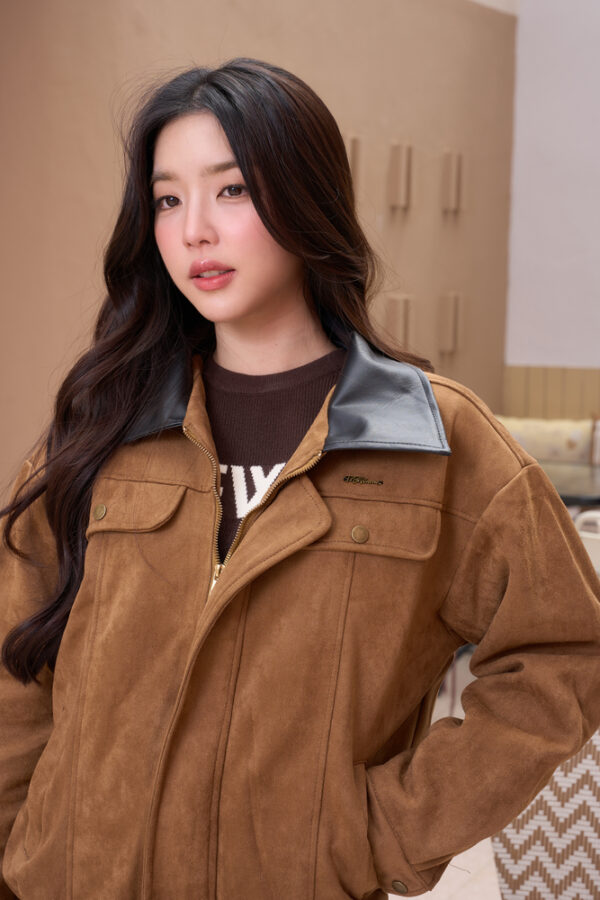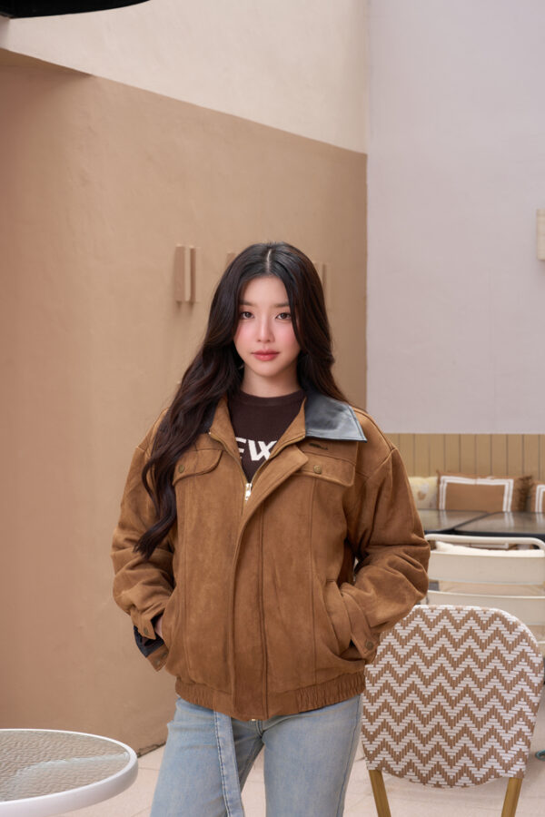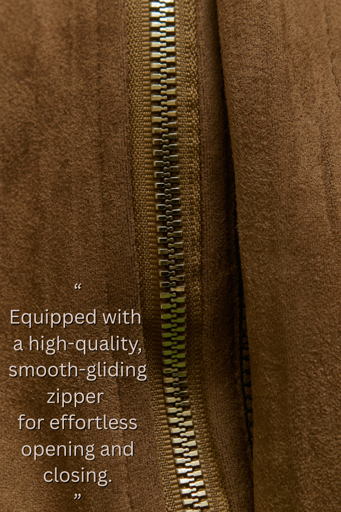 A quintessential piece for the modern traveler, this luxe suede-feel jacket with a sleek faux leather collar strikes the perfect balance between casual comfort and rugged style. It’s the ideal layering piece for an urban exploration trip to a cool city or a stylish weekend getaway.