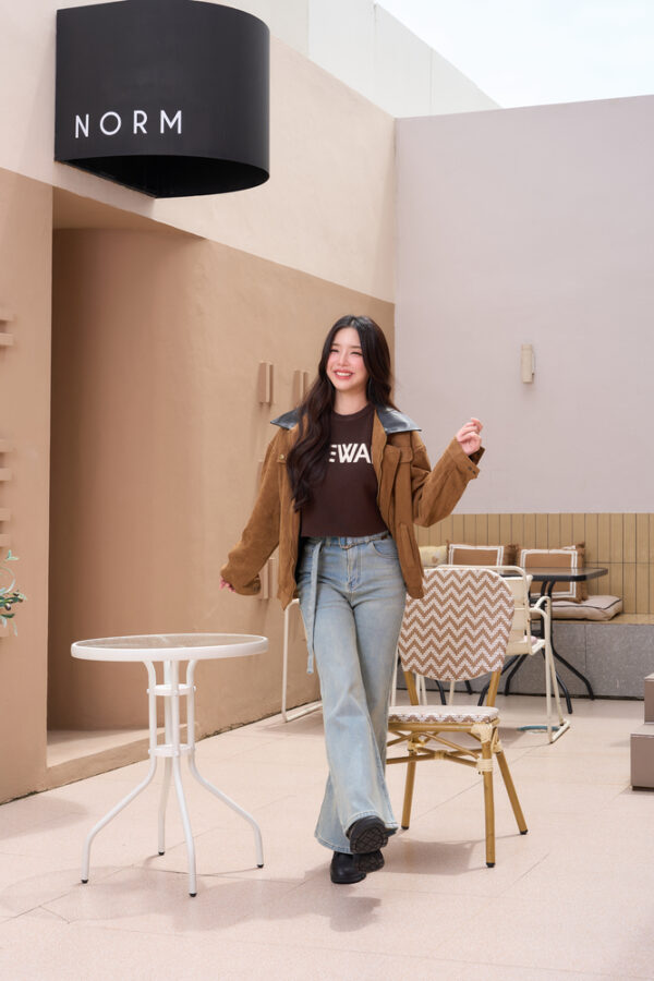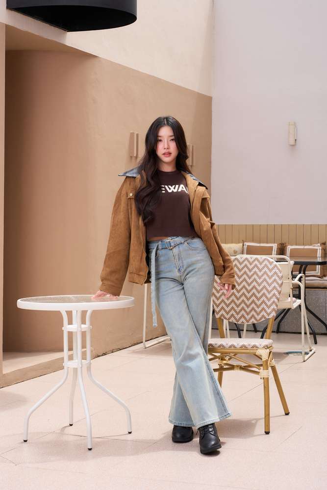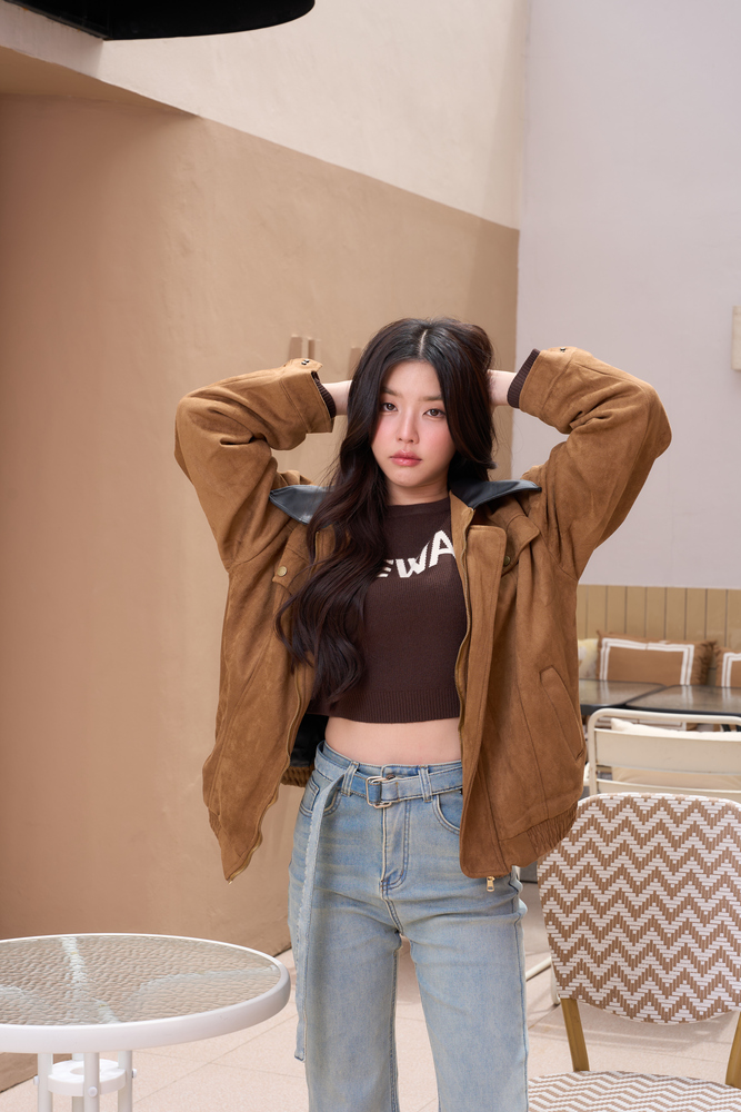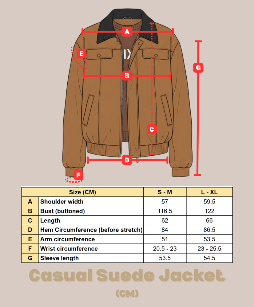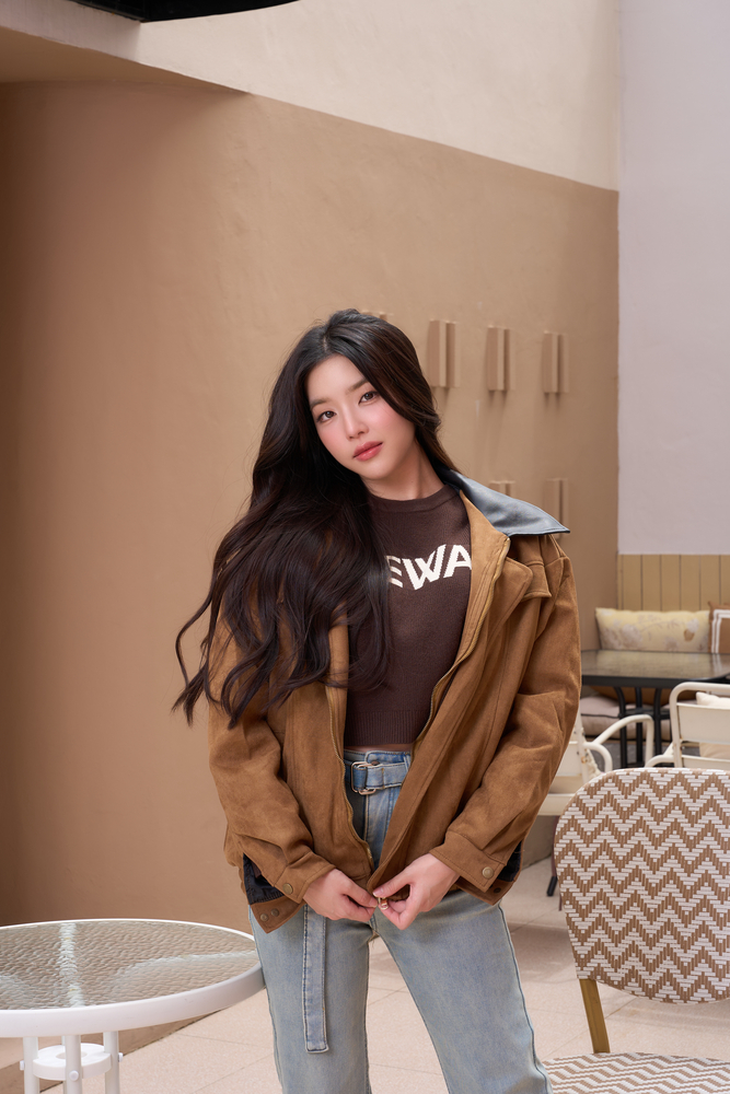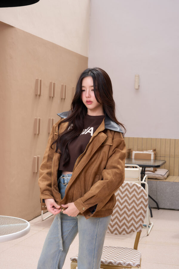 Casual Suede Jacket – For mild climates; balances hips with structure.