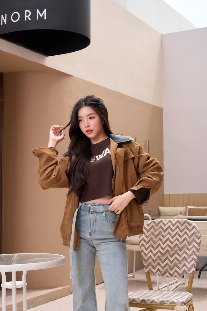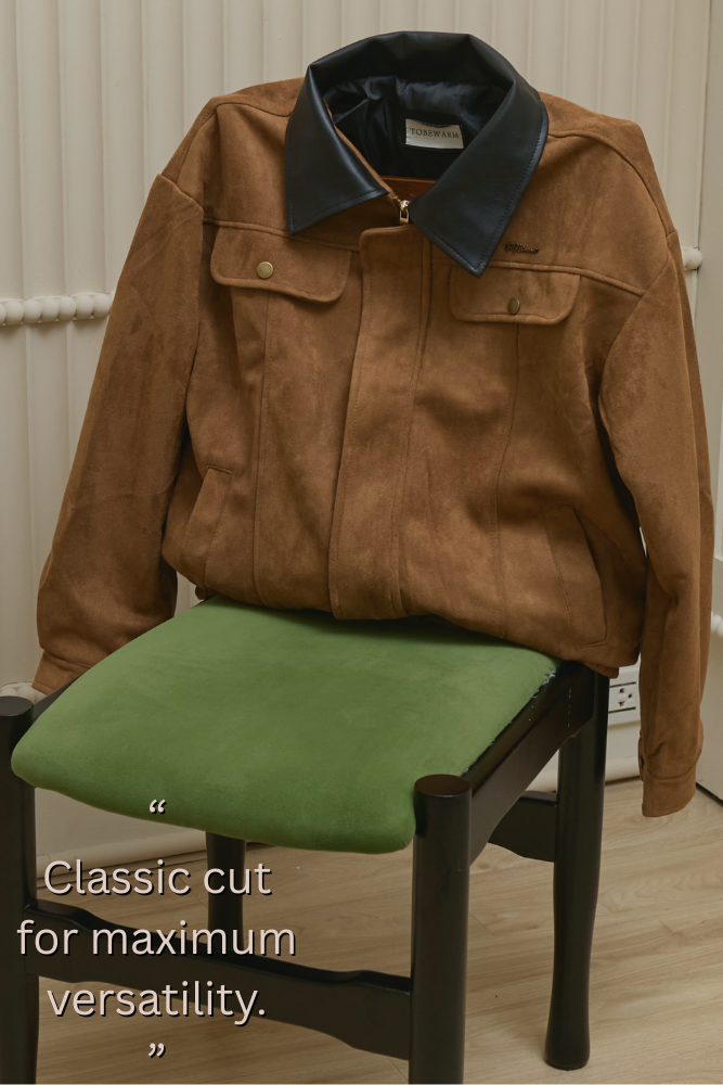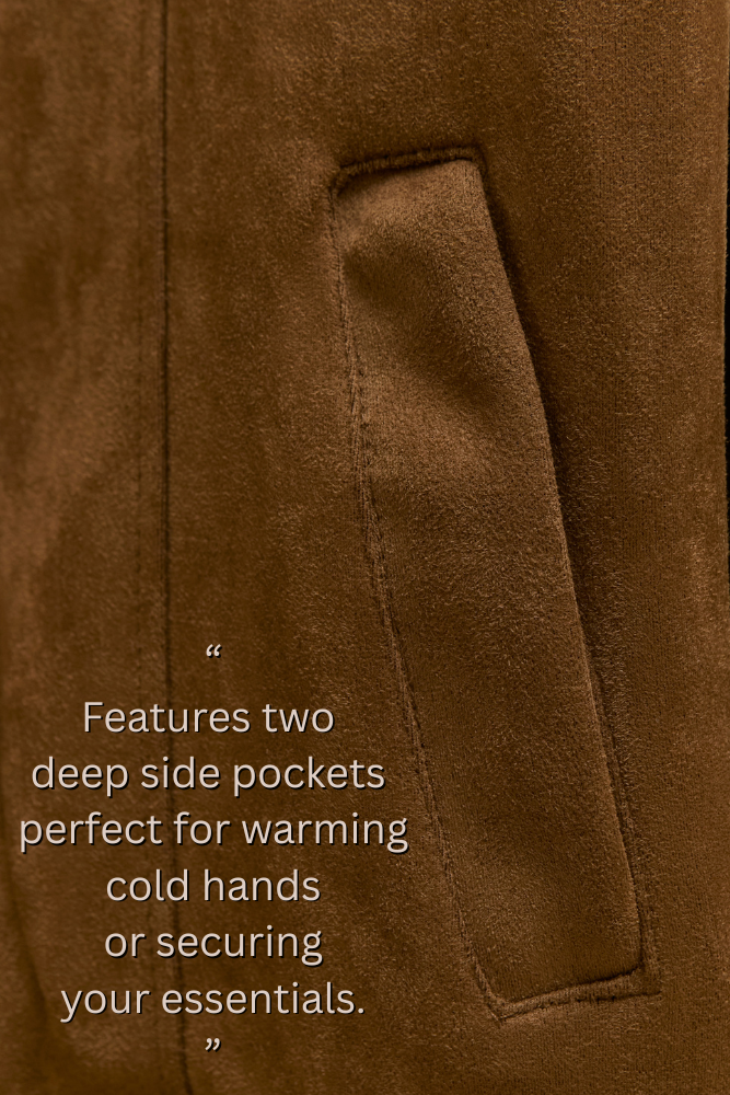A quintessential piece for the modern traveler, this luxe suede-feel jacket with a sleek faux leather collar strikes the perfect balance between casual comfort and rugged style. It’s the ideal layering piece for an urban exploration trip to a cool city or a stylish weekend getaway.