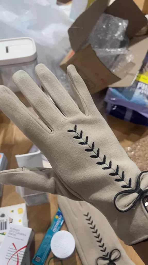 The gloves are beautiful and very cute. Unfortunately, when I ordered the cream color, it was sold out, so I ordered the pink color, which is sweet and nice.