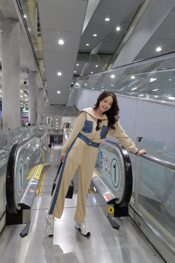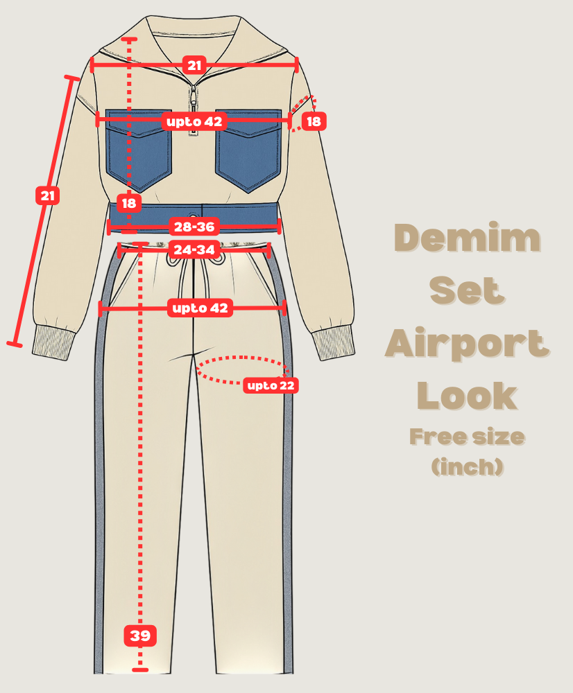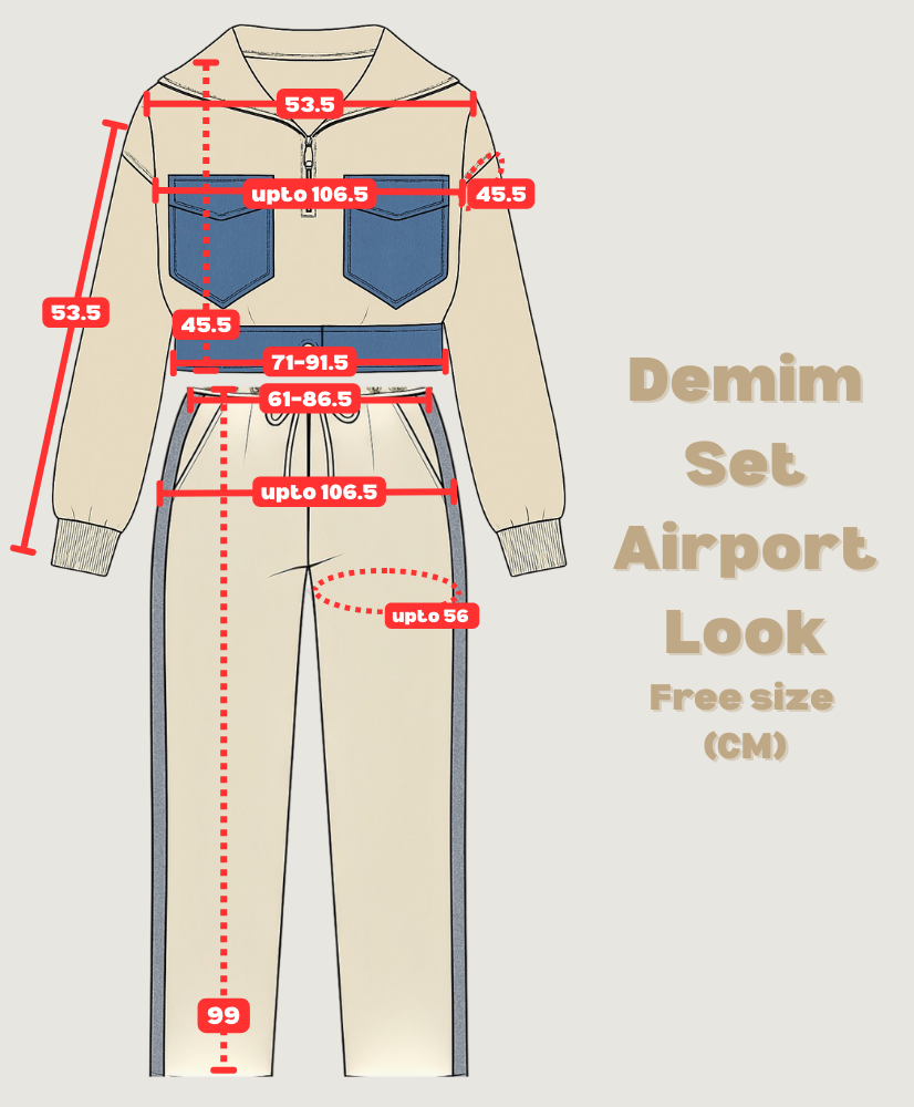This adorable two-piece set features a jacket and trousers with stylish denim accents, perfect for upgrading your travel wardrobe. The versatile jacket can be worn open or zipped up, and the trousers are designed with a comfortable, straight-leg fit. If you’re tired of basic tracksuits, this set offers a fresh and chic alternative.
