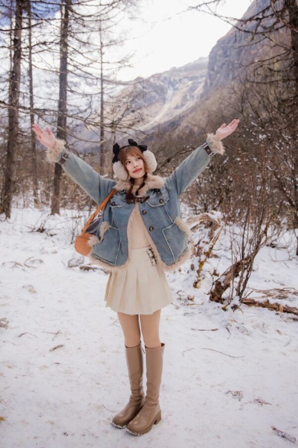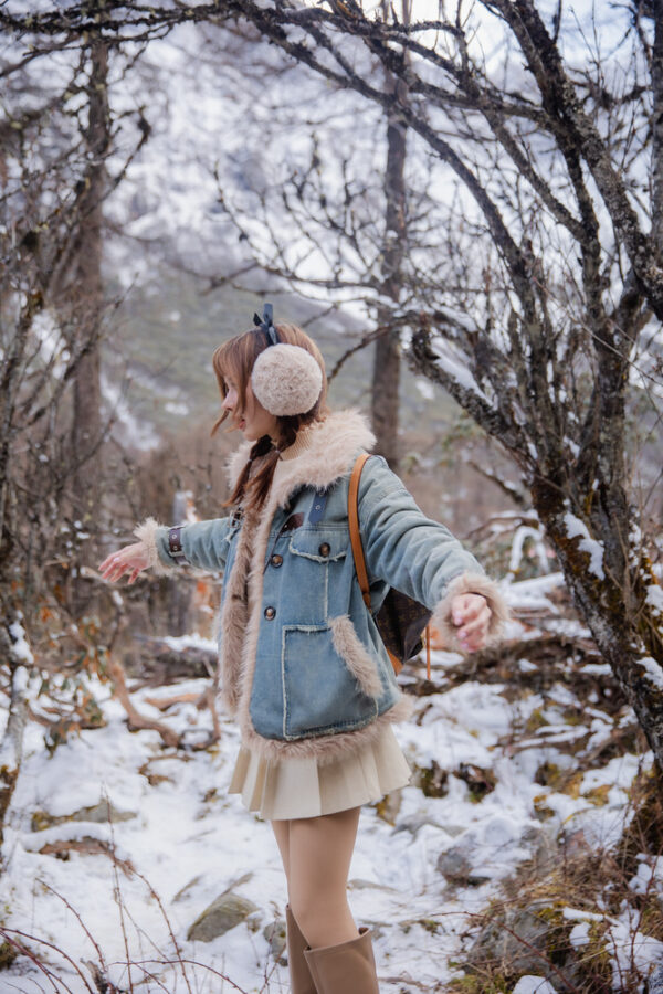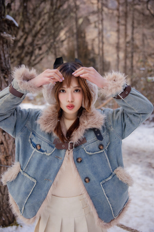 Denim Fur Jacket – Soft, thin lining with cozy insulation.
