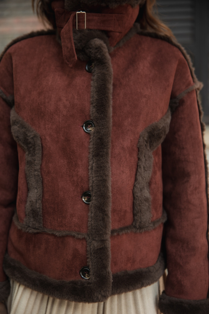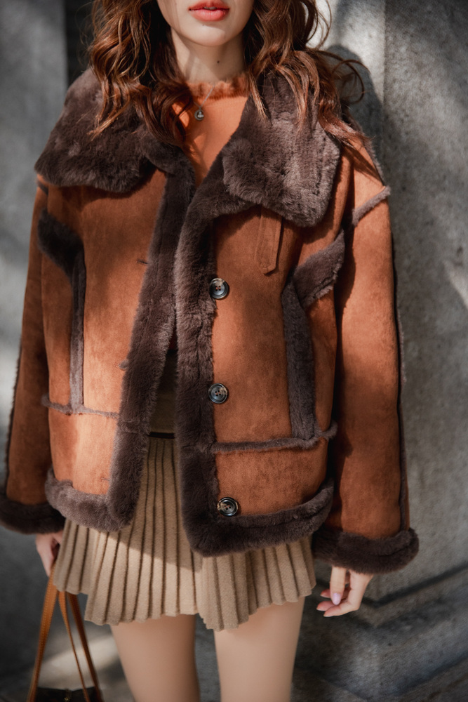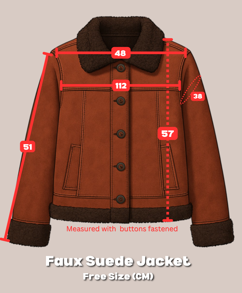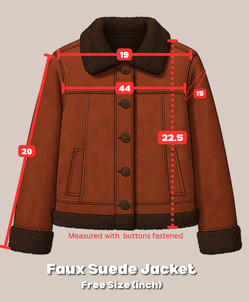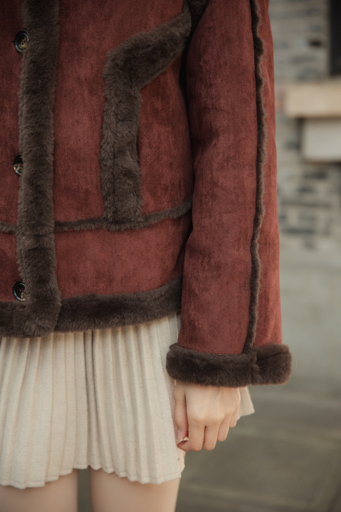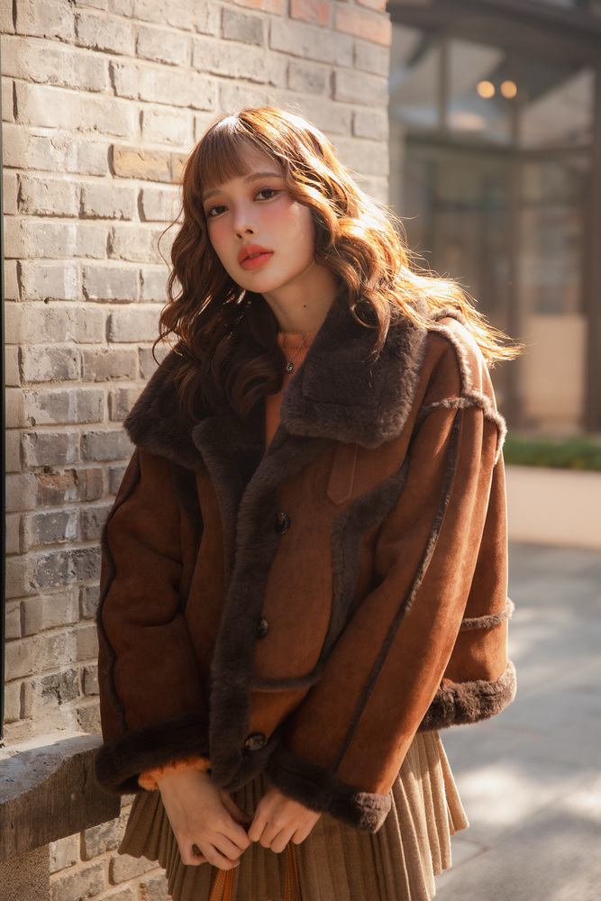Meet your new best friend for winter adventures! The Faux Suede Jacket blends ultimate warmth with chic style. Crafted from premium faux suede for a luxuriously soft feel and excellent wind resistance, it’s lined with thick, plush fur extending to the collar for all-day comfort. Unique details like a belt strap closure and fluffy fur-trimmed cuffs add a distinctive touch. Perfect for cold city trips, it ensures you look great and feel cozy while capturing beautiful memories. Easily pair it with anything from skirts to trousers for a stylish, warm look!