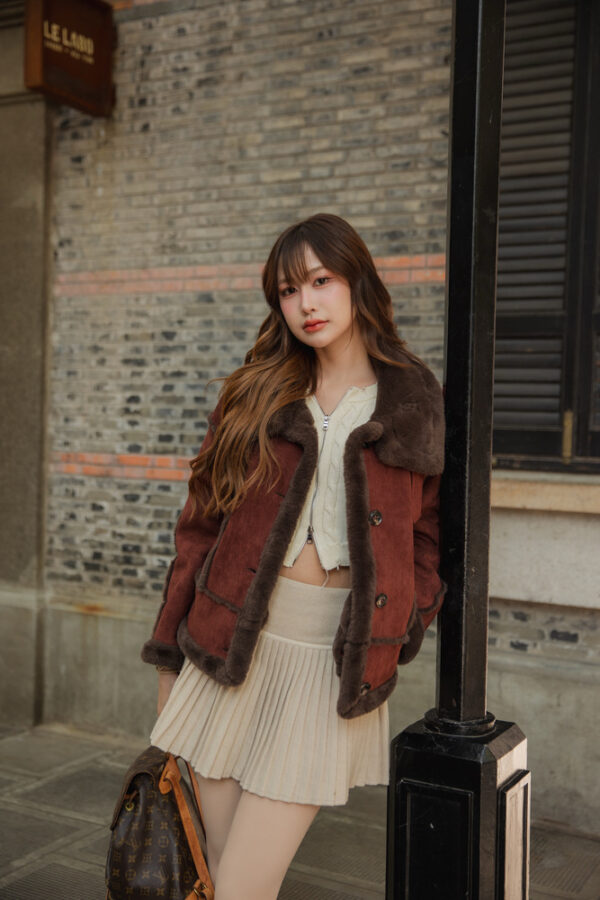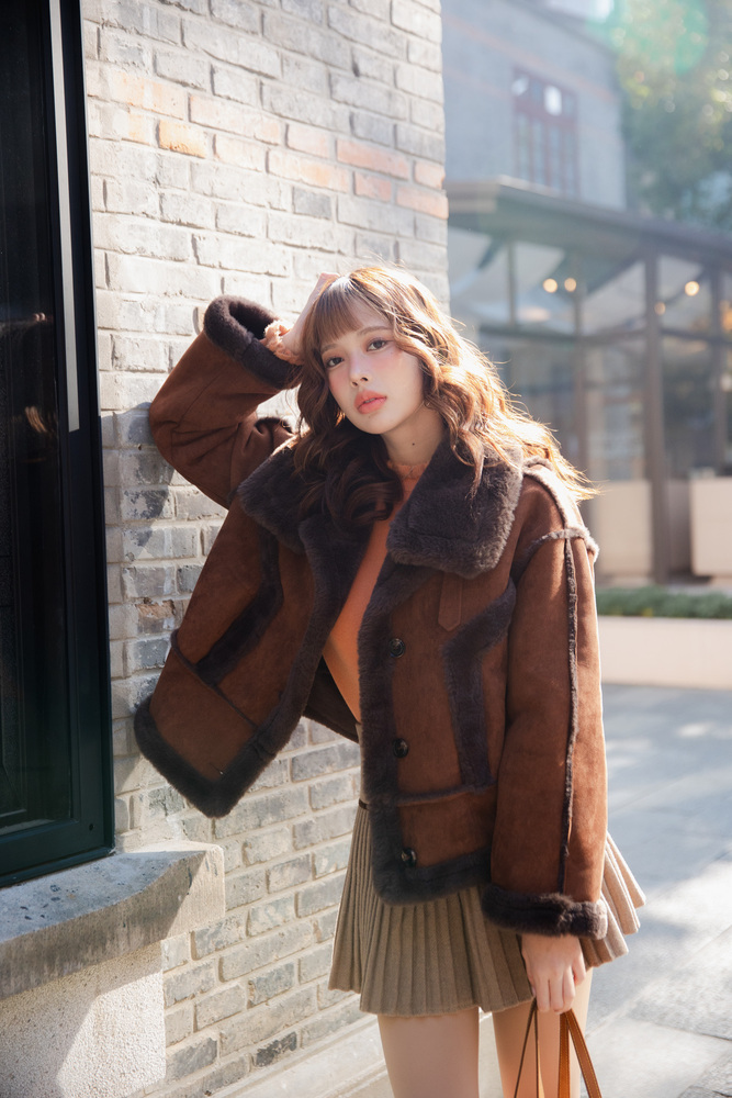 Meet your new best friend for winter adventures! The Faux Suede Jacket blends ultimate warmth with chic style. Crafted from premium faux suede for a luxuriously soft feel and excellent wind resistance, it’s lined with thick, plush fur extending to the collar for all-day comfort. Unique details like a belt strap closure and fluffy fur-trimmed cuffs add a distinctive touch. Perfect for cold city trips, it ensures you look great and feel cozy while capturing beautiful memories. Easily pair it with anything from skirts to trousers for a stylish, warm look!