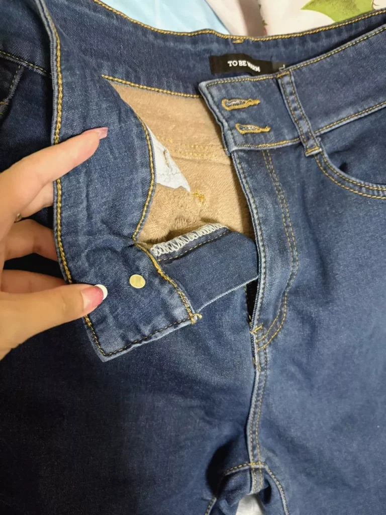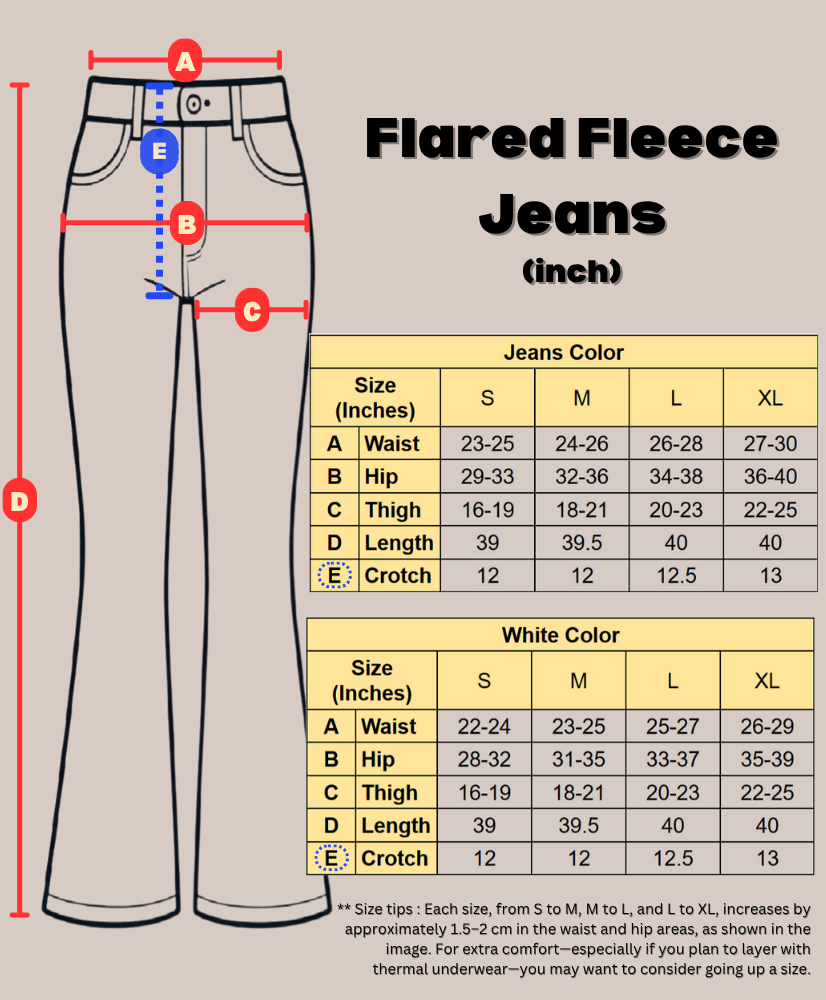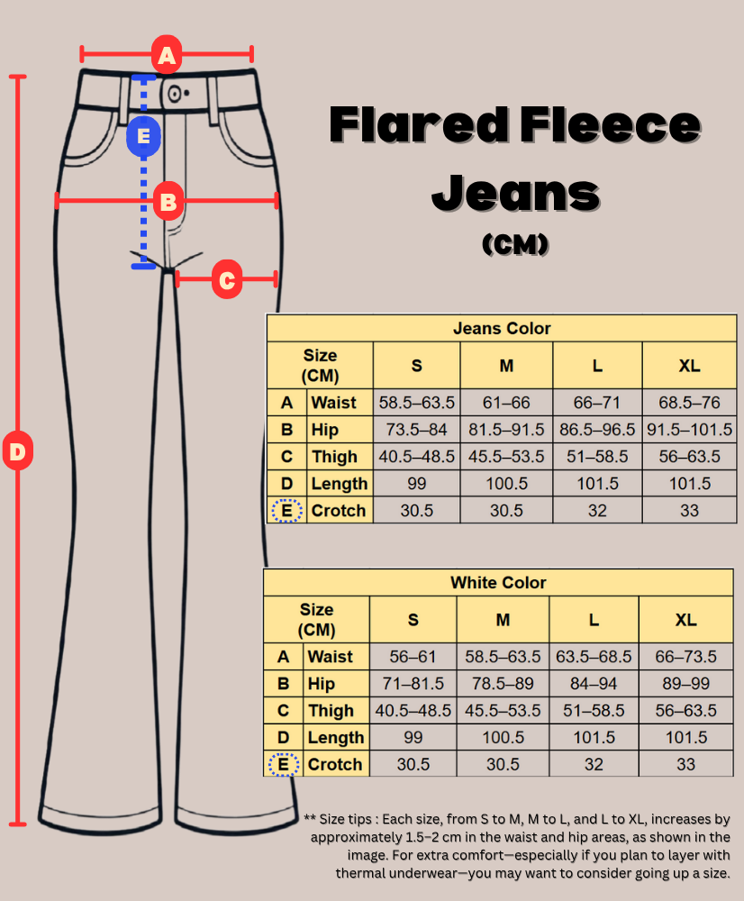 Stay warm in style with these fleece-lined flared jeans, perfect for cold weather, even in subzero temperatures. The soft, thick lining keeps you cozy, while the sleek design gives a tall, slim look for added confidence. Pair them with a fitted turtleneck and heeled boots for a chic, retro vibe, or a chunky knit sweater and sneakers for a cozy-casual look. Please find a close-up product video in the photo gallery. These jeans are perfect for a trip to a winter city, a day of sightseeing, or a cozy evening out.