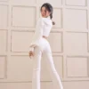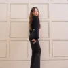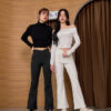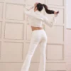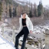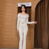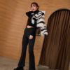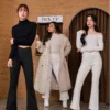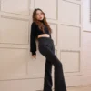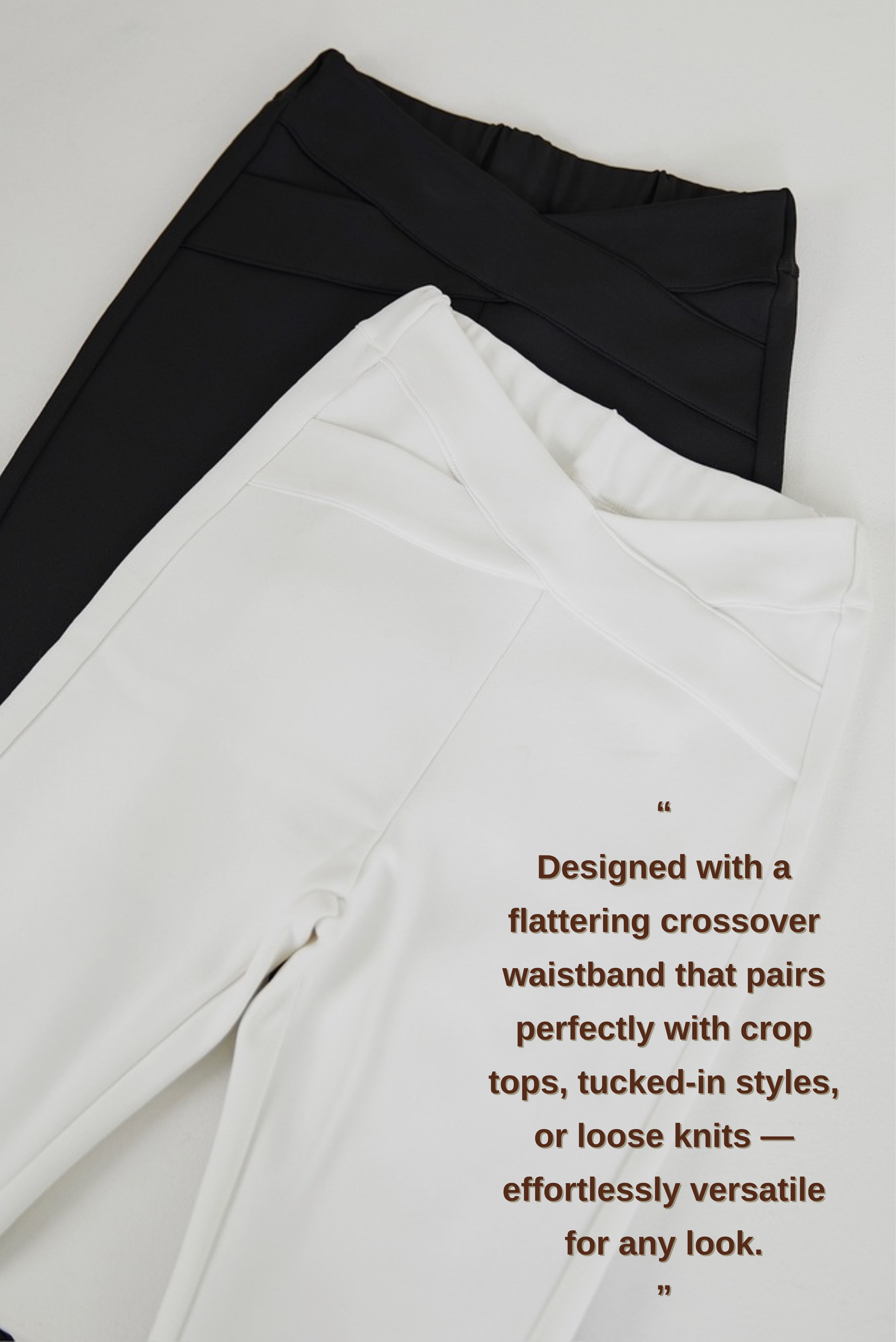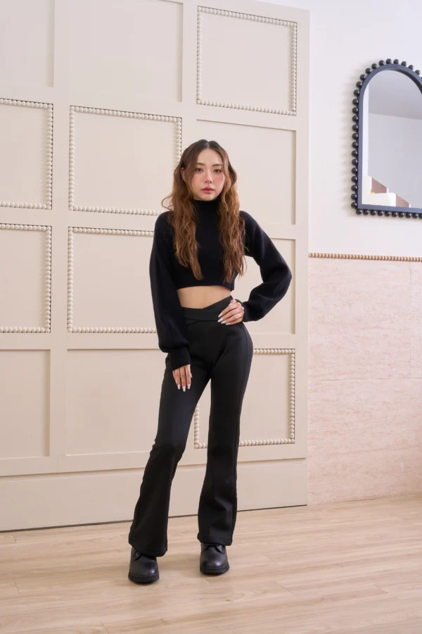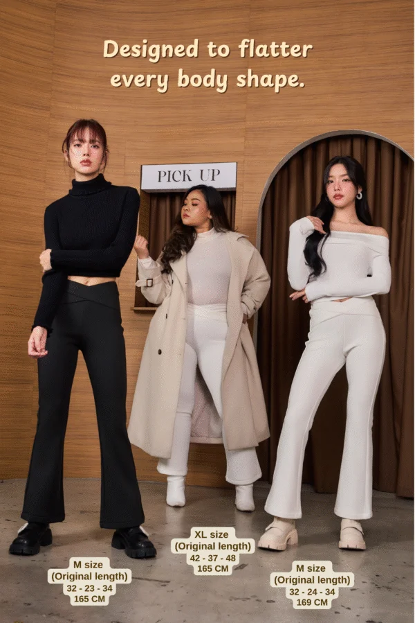 These flared leggings feature a soft fleece lining for ultimate comfort and warmth. With excellent elasticity, they’re designed to keep you cozy while creating a flattering silhouette that makes your legs look long and sleek. The high-waisted, criss-cross design adds a fashionable twist, perfect for a chic and comfortable look. Pair them with a cropped sweater or a fitted top and heeled boots for an effortlessly stylish outfit. Ideal for a city trip, a casual coffee date, or a day of shopping in a cool climate.