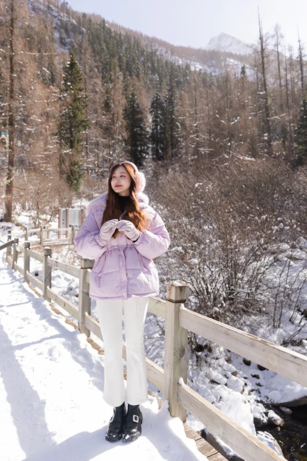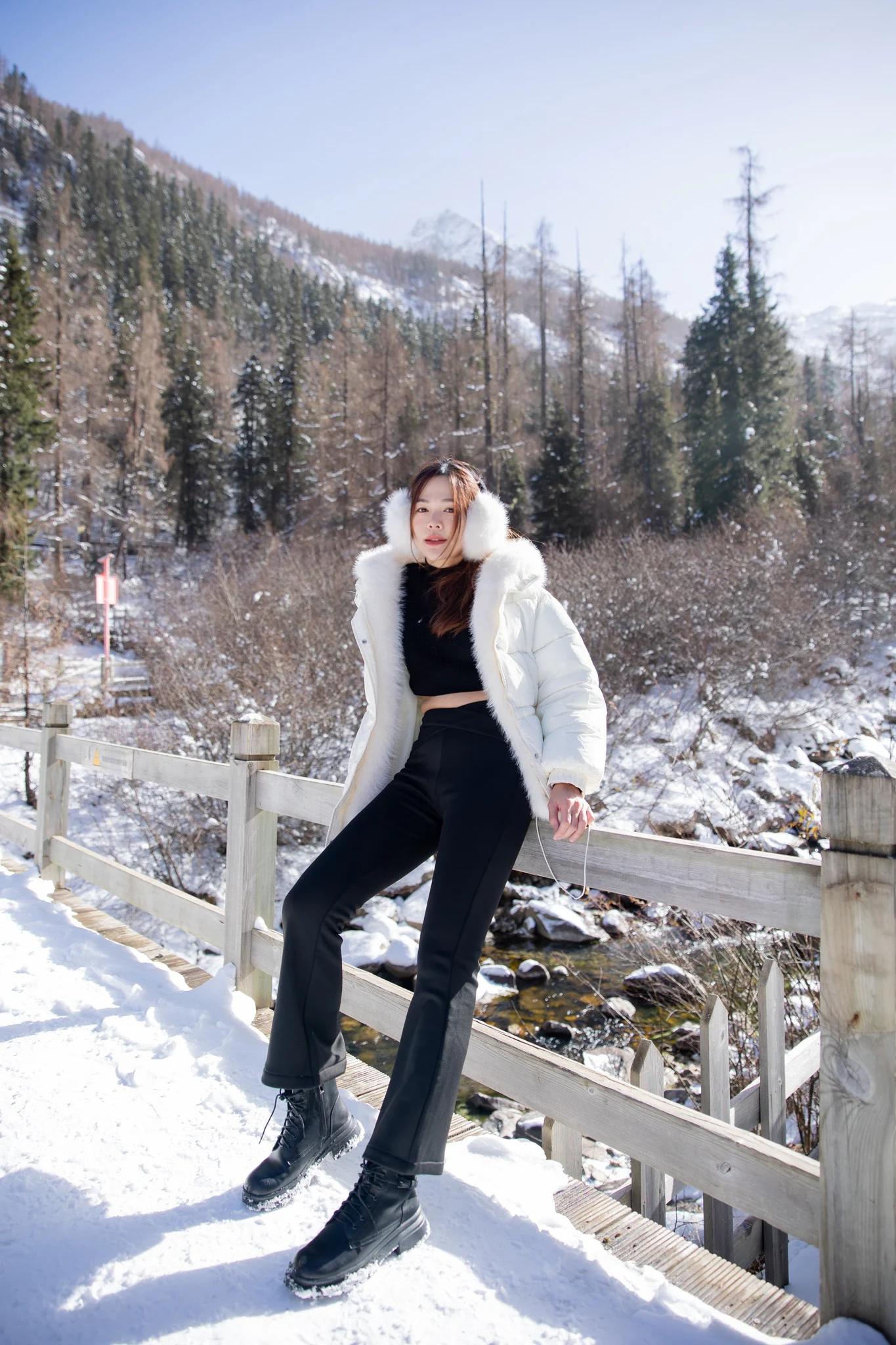 Okay, it’s good for keeping warm, comfortable to wear, soft fabric. Height 152, wear with thick shoes, they don’t drag on the floor. The legs are a little flared, bell-shaped, and the back is smocked. Looks good when worn.