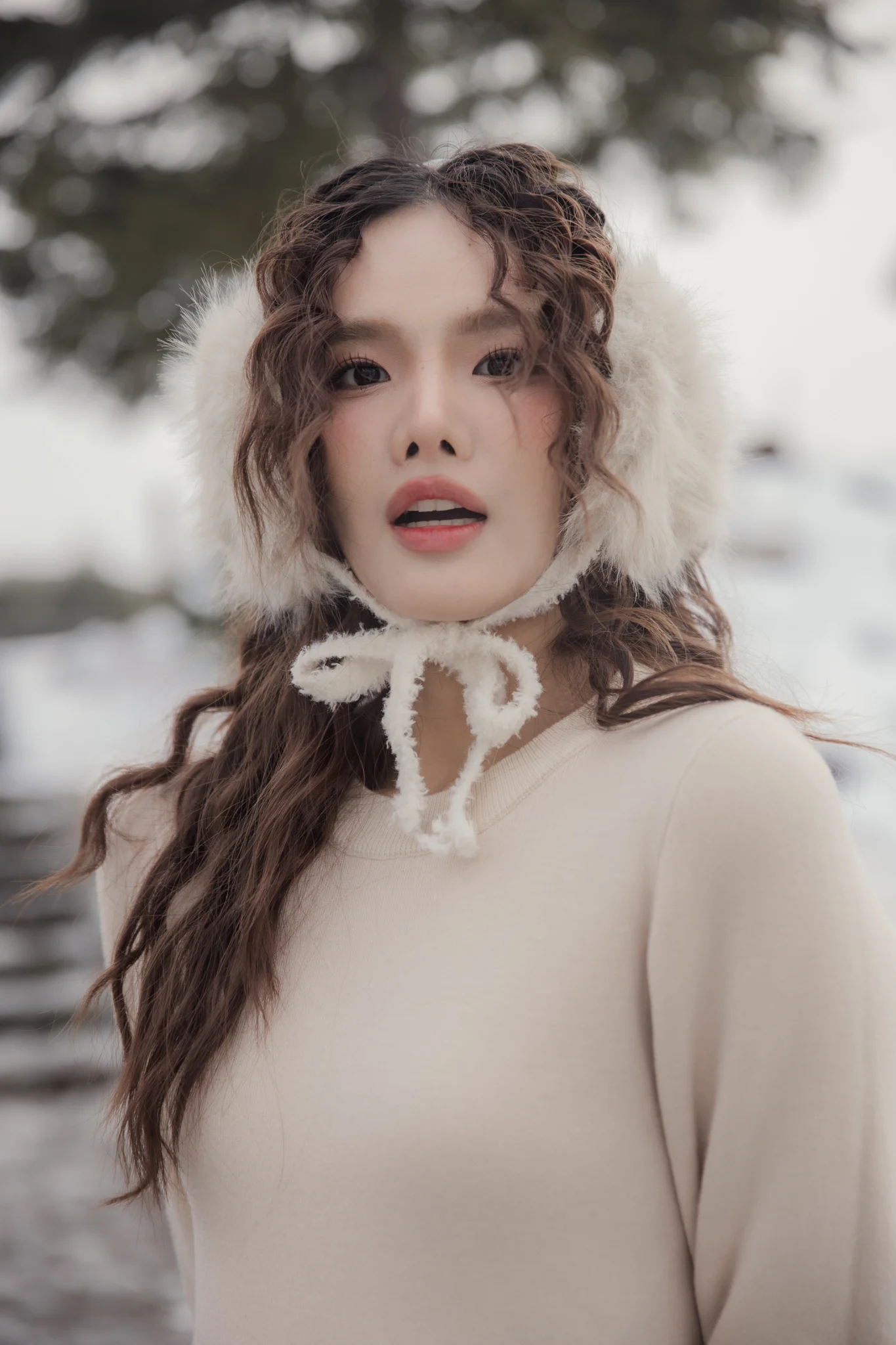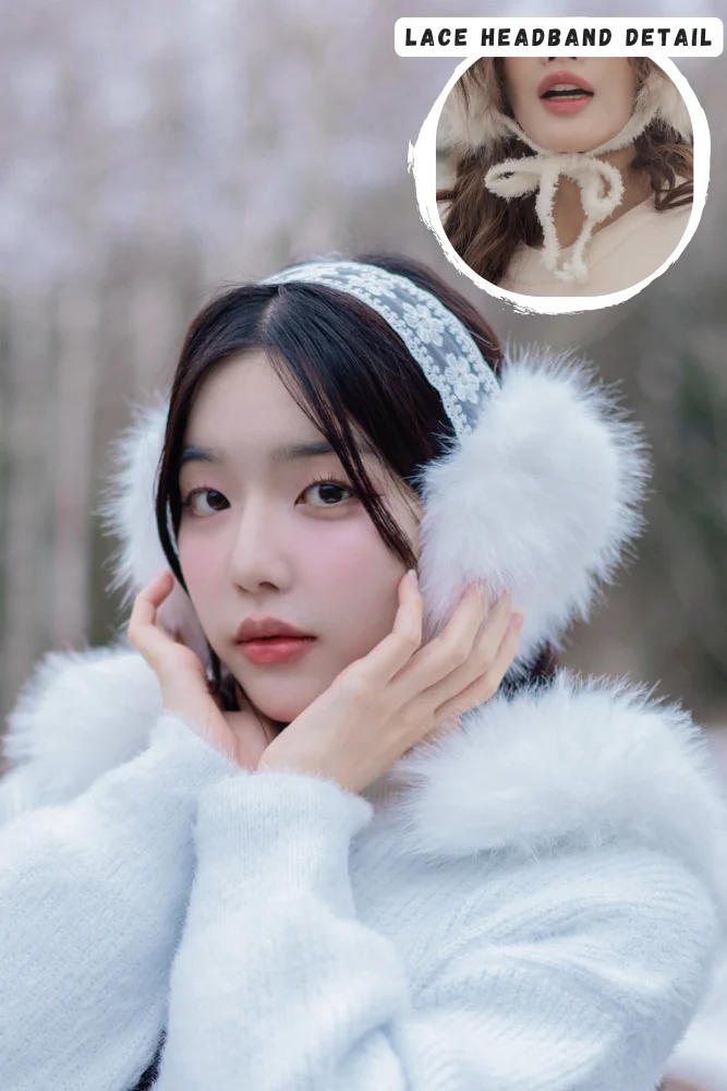 Stay warm and look irresistibly sweet with these Frosty Fluffy Lace Earmuffs. Featuring luxurious, voluminous faux fur, they offer superior protection against cold wind. The cute bow-tie detail beneath the chin and the delicate lace-patterned band add a charming, feminine touch. Designed to feel soft and comfortable, they keep your ears warm without pinching, making them the perfect cozy accessory for your winter trips.