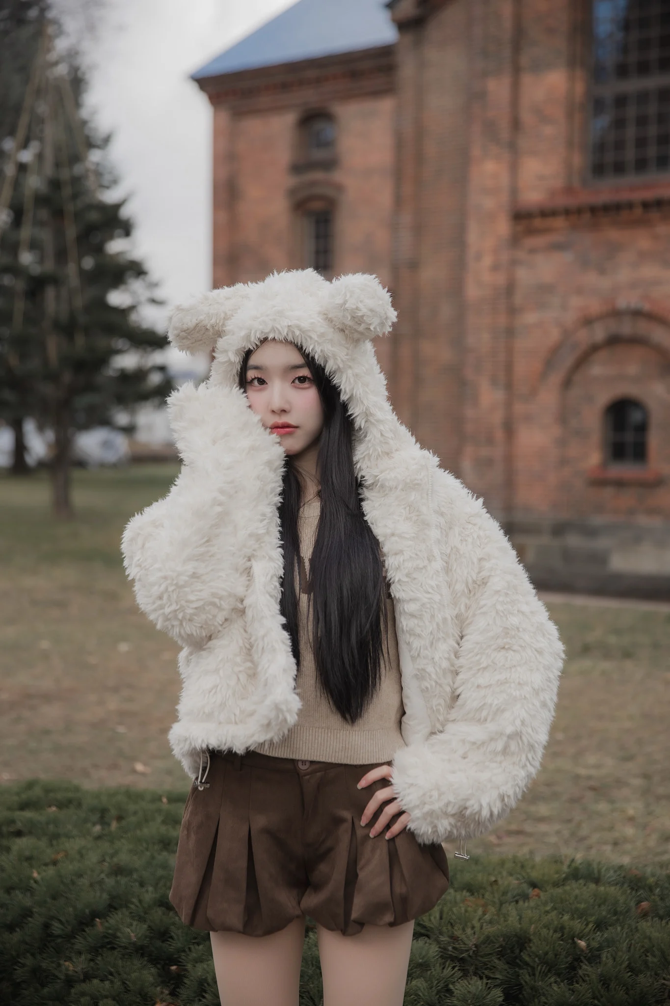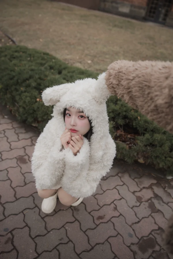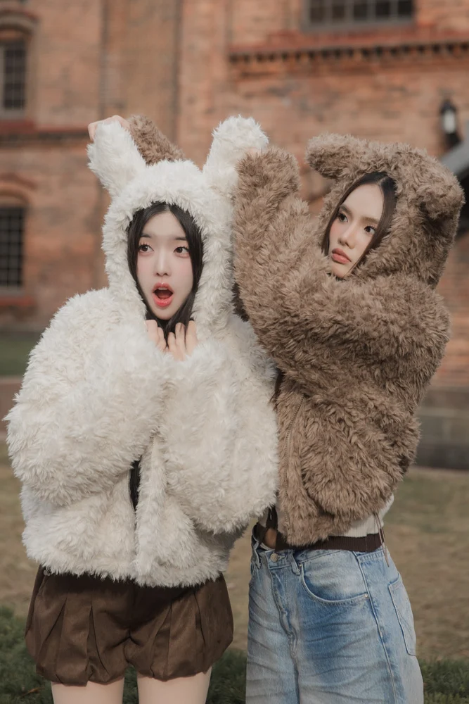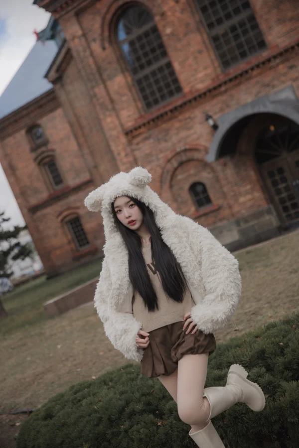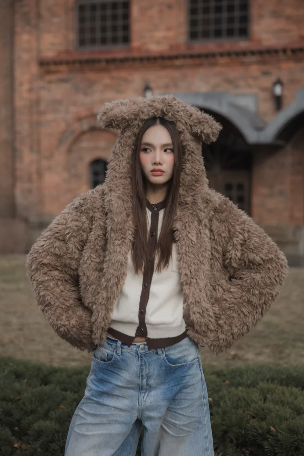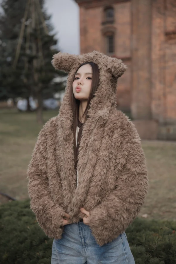 Sugar Fluff Coat – Cozy fleece-style coat with faux-shearling and velvet lining.