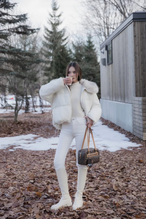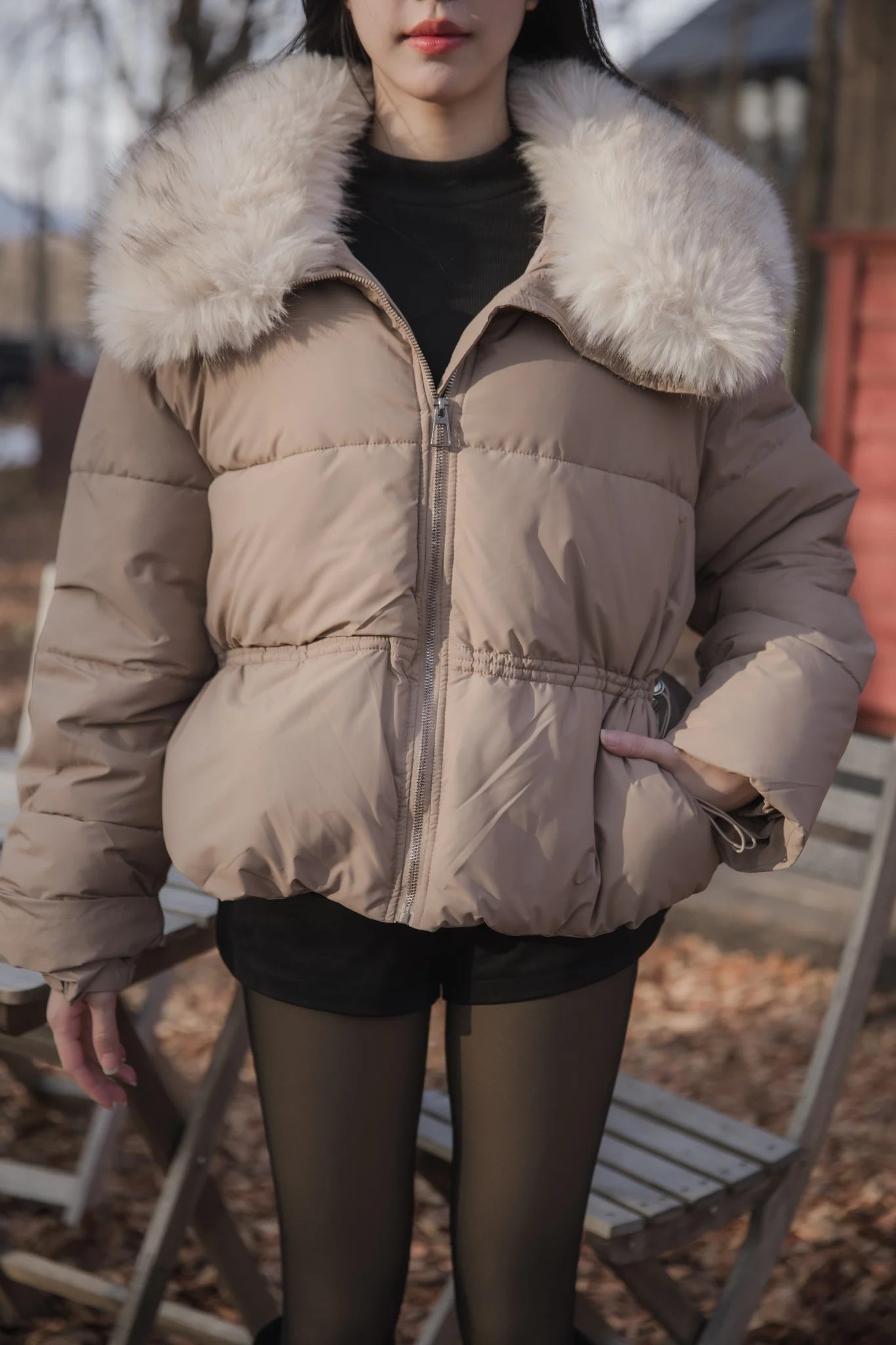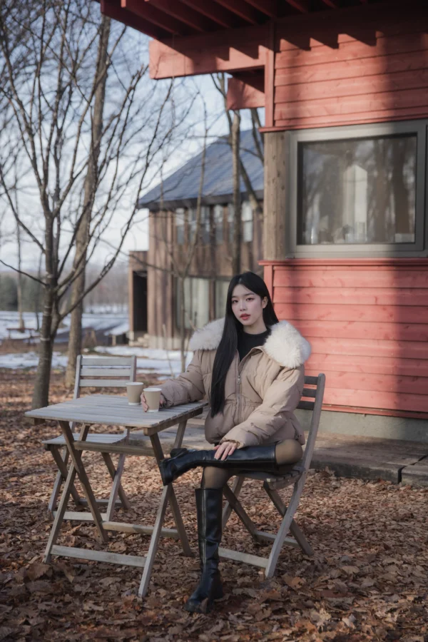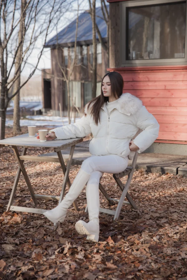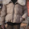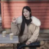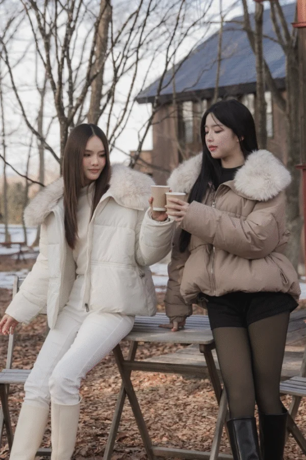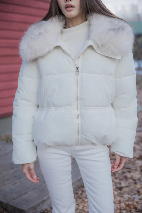 Mofy Collar Coat – A windproof jacket featuring a soft faux-fur collar.