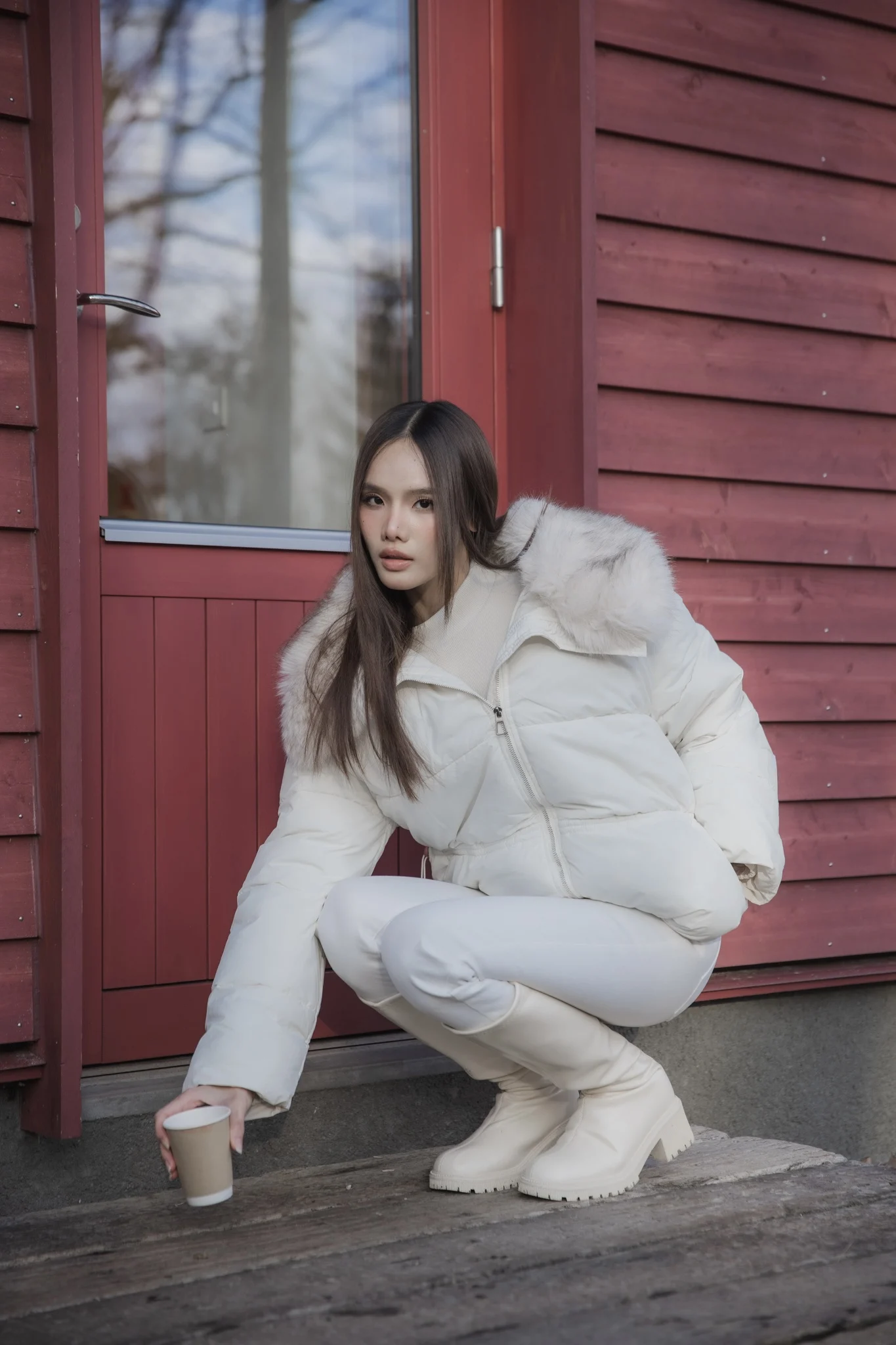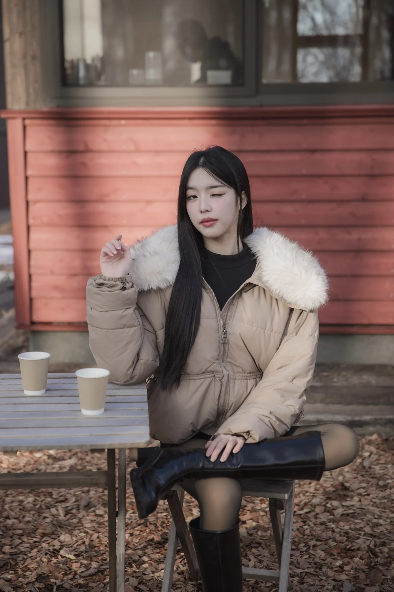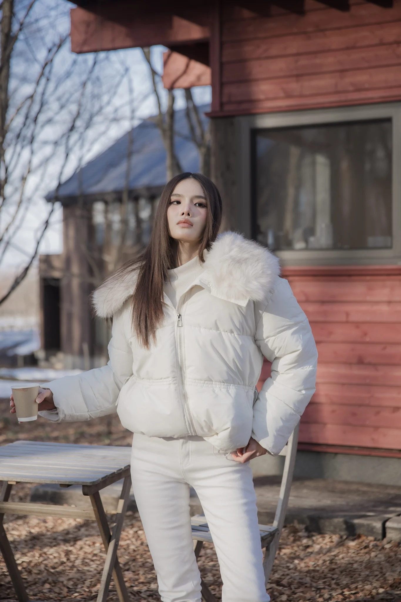 Mofy Collar Coat – A windproof jacket featuring a soft faux-fur collar.