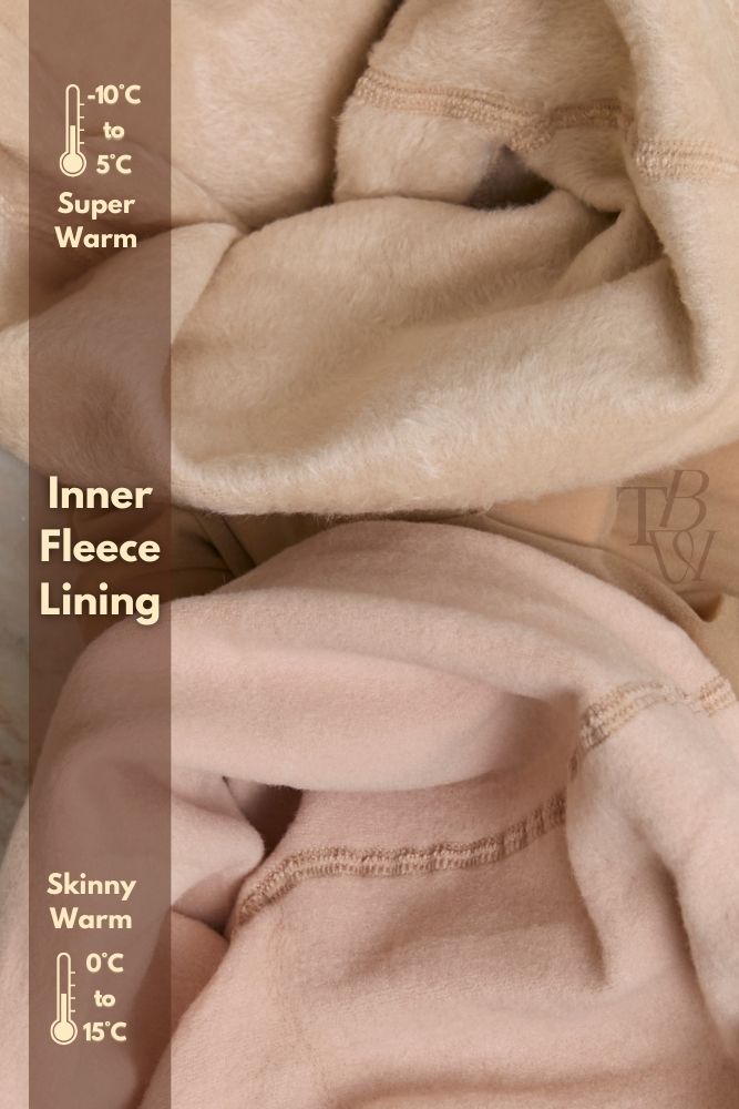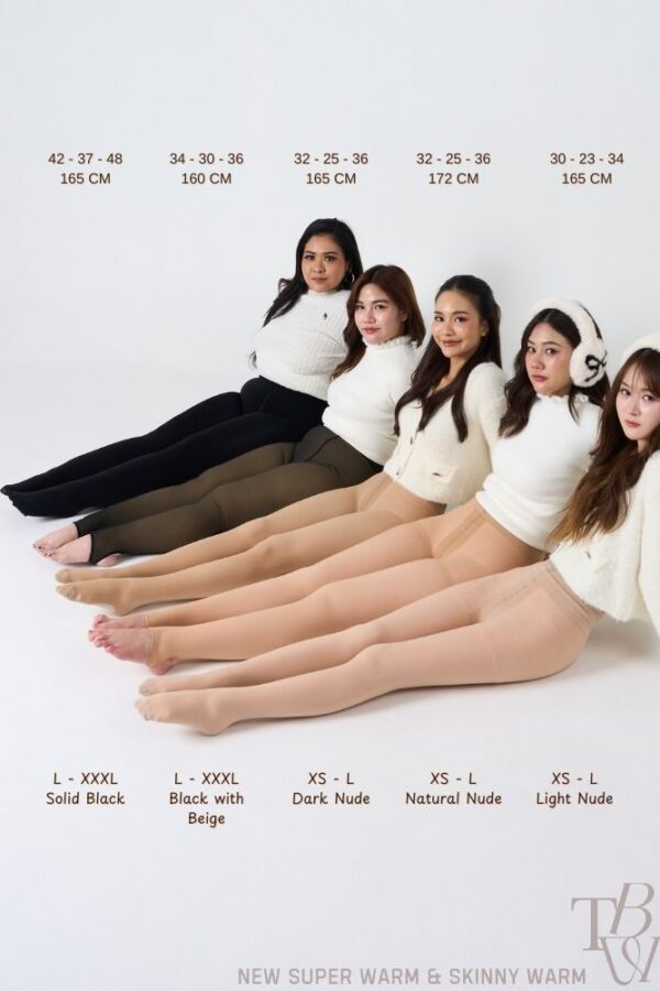 NEW!! Skinny Warm – Sheer thermal stockings with light fleece lining, suitable for 0–15°C.