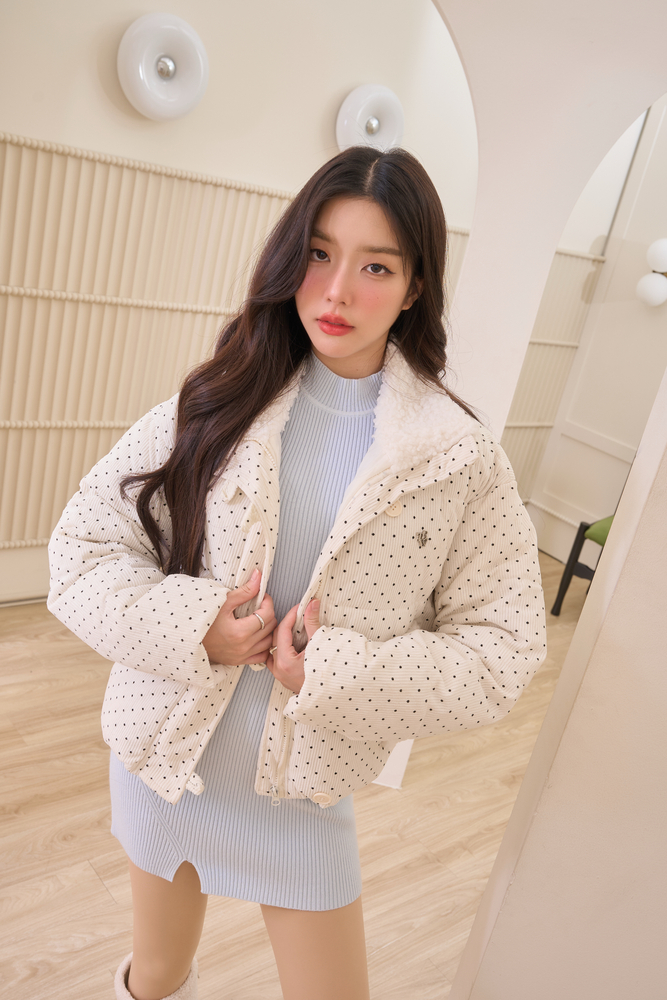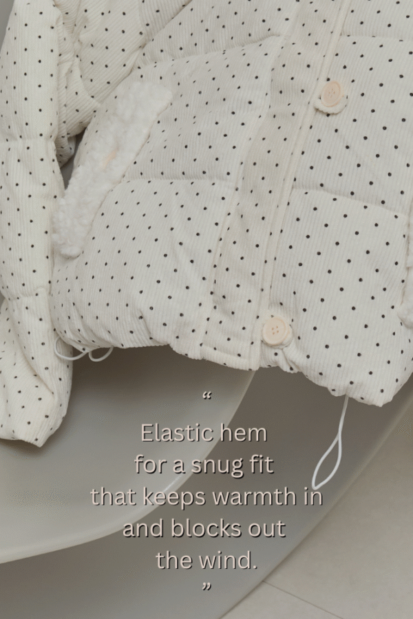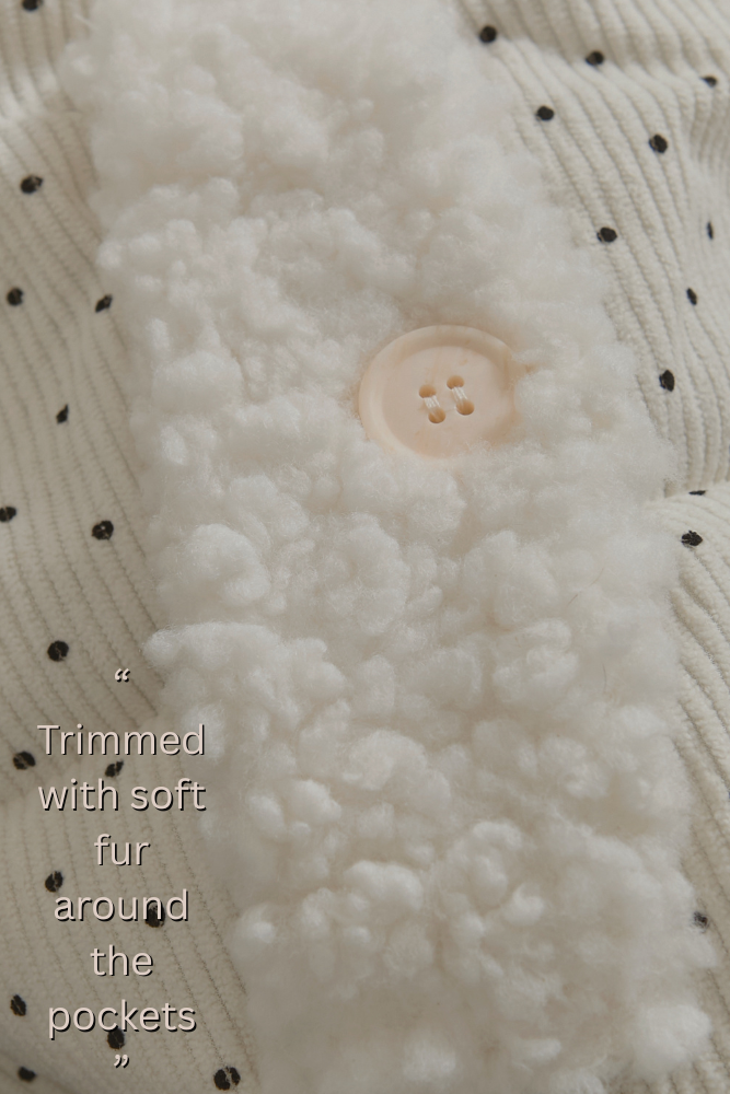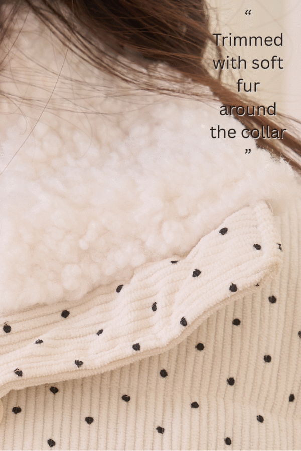 This Polka Dot Bomber Jacket is built for comfort and style on your cold-weather travels. It blends a cozy aesthetic with essential functional features, making it perfect for exploring cold cities or walking snowy streets. Its plush lining and secure closures keep you warm, while the cute pattern and soft furry pocket accents elevate your look. Wear it casually with jeans and boots or dress it up over a knit dress.