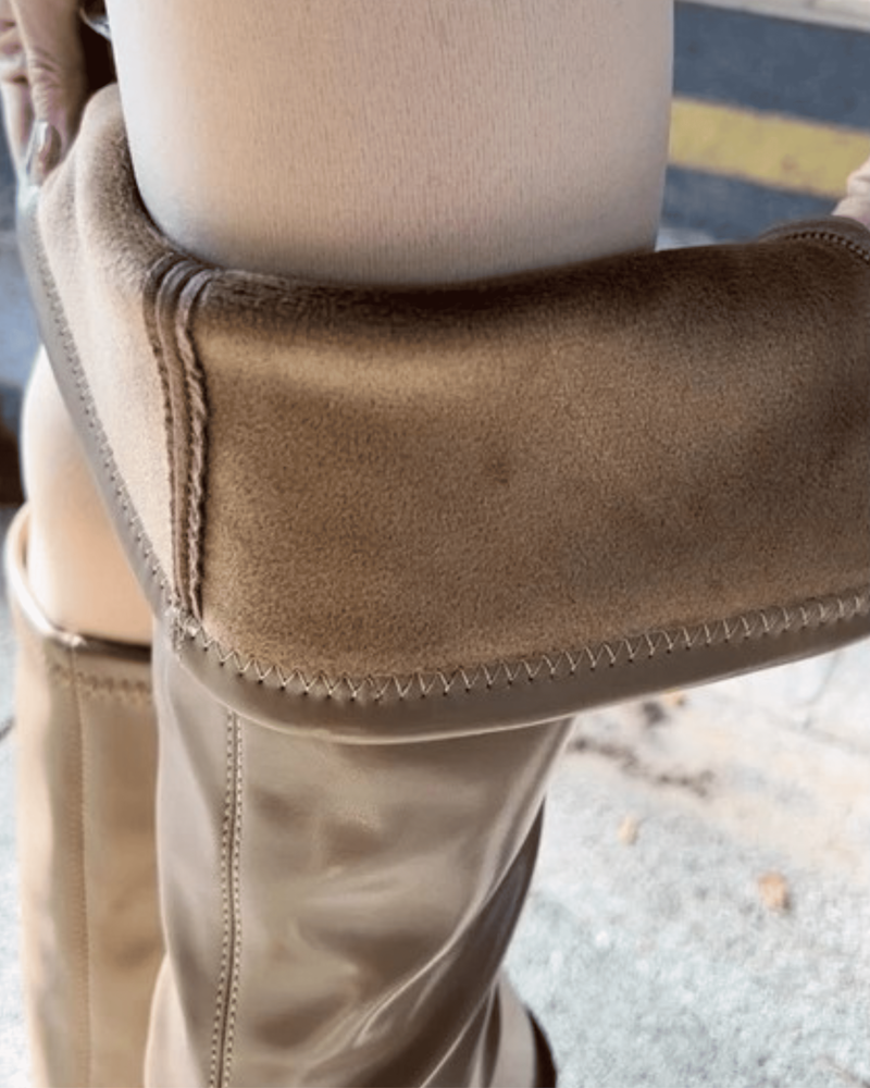 Premium Fleece Long Boots – Soft PU leather with full fleece lining for warmth and comfort.