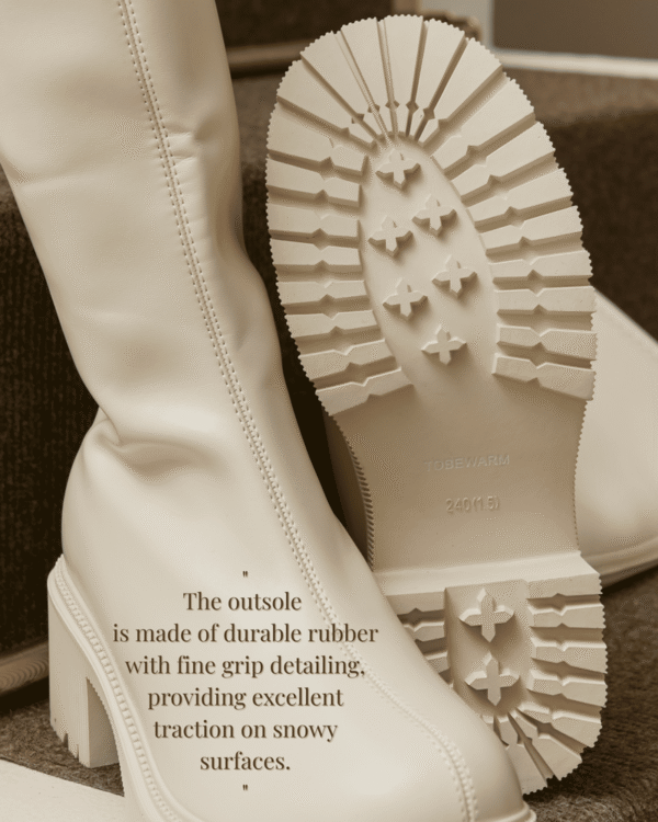 These shoes are very cute. They are lined with fur, keep you warm, and are slip-resistant to a certain degree. They are waterproof and make you look taller. They help make your legs look longer.