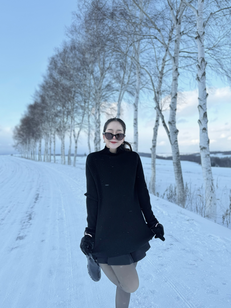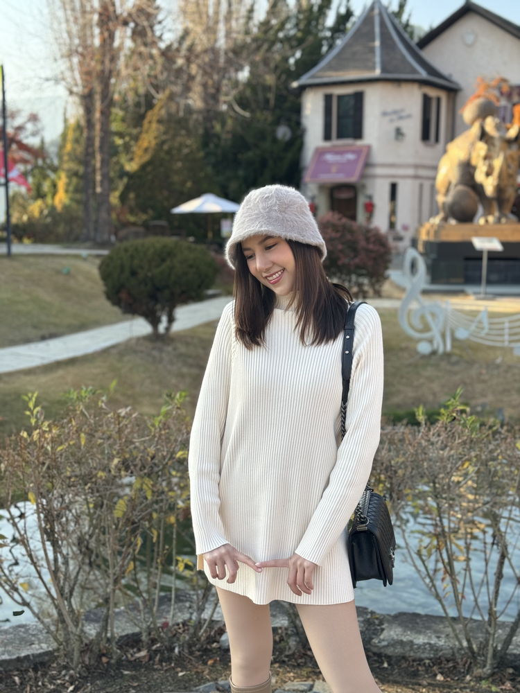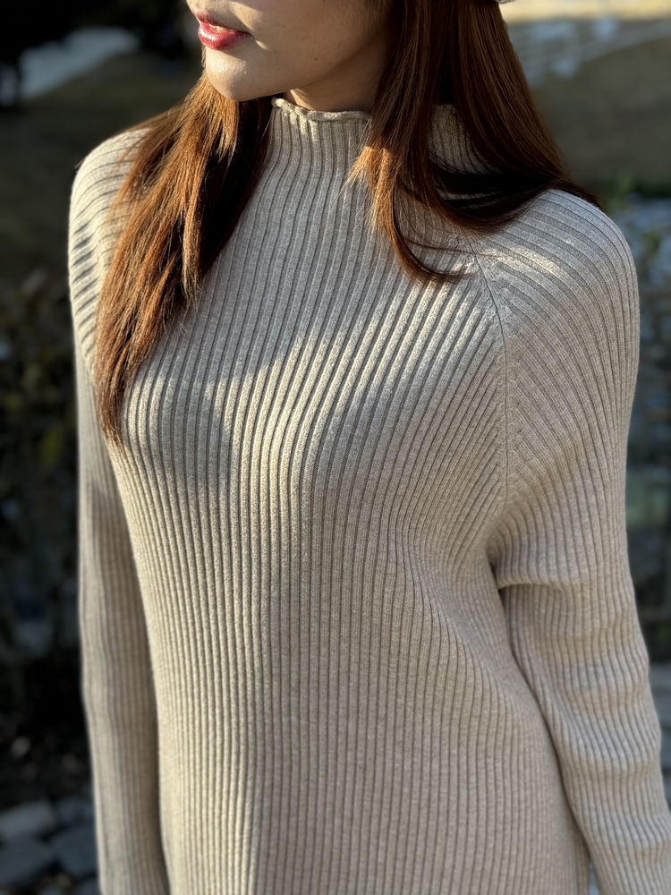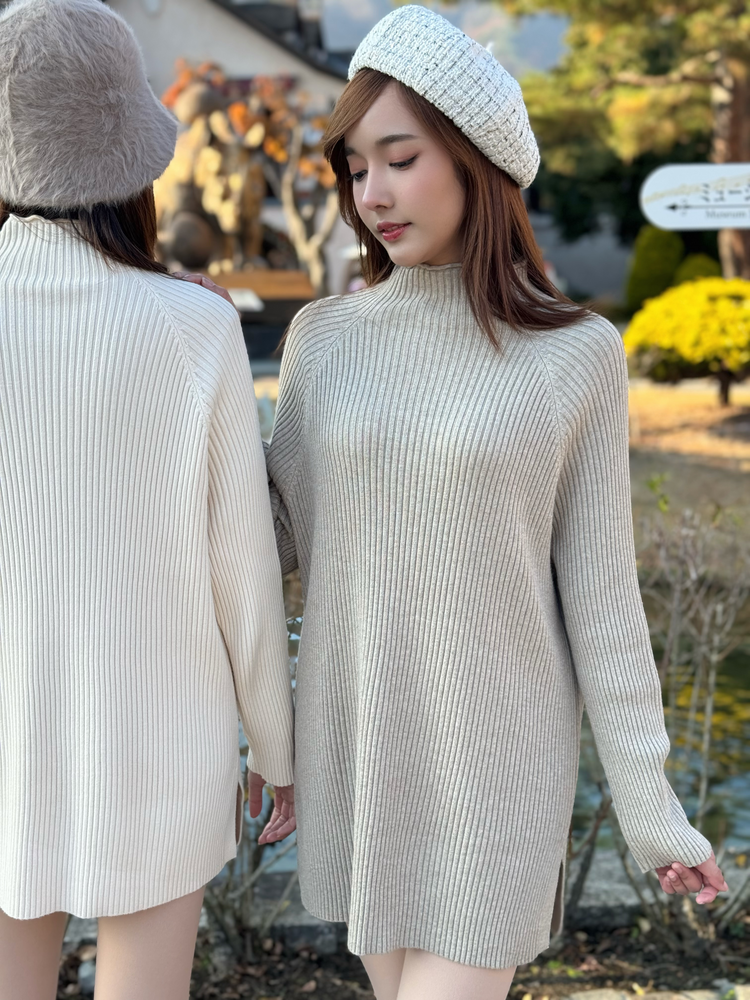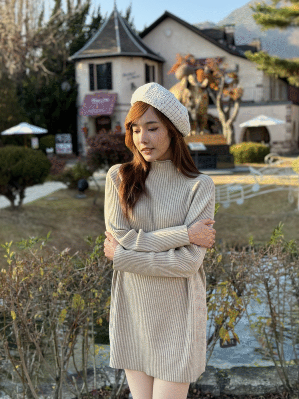 This soft and thick knit dress offers a peplum-style fit that is both stylish and comfortable. Its versatile design allows it to be worn as a chic mini dress for those up to 165 cm, or as a trendy oversized top for taller individuals. Perfect for a cozy yet fashionable airport look or a relaxed city stroll on a chilly day.