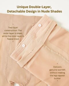 Crafted with a special thermal knitting technique, these fleece-lined stockings provide exceptional warmth without adding bulk to your legs. Featuring ToBeWarm’s exclusive double-layer, detachable design, available exclusively in nude shades, they offer both functionality and versatility in winter fashion.