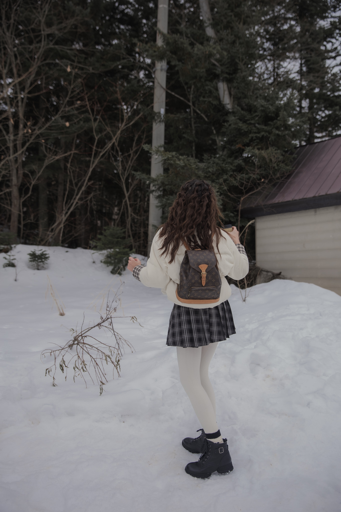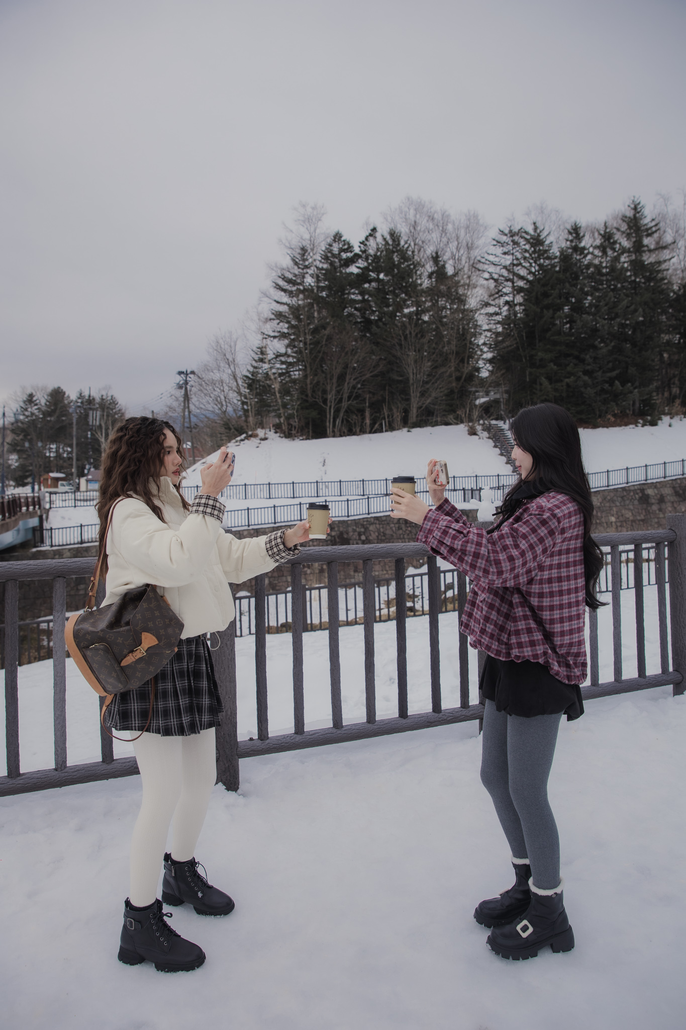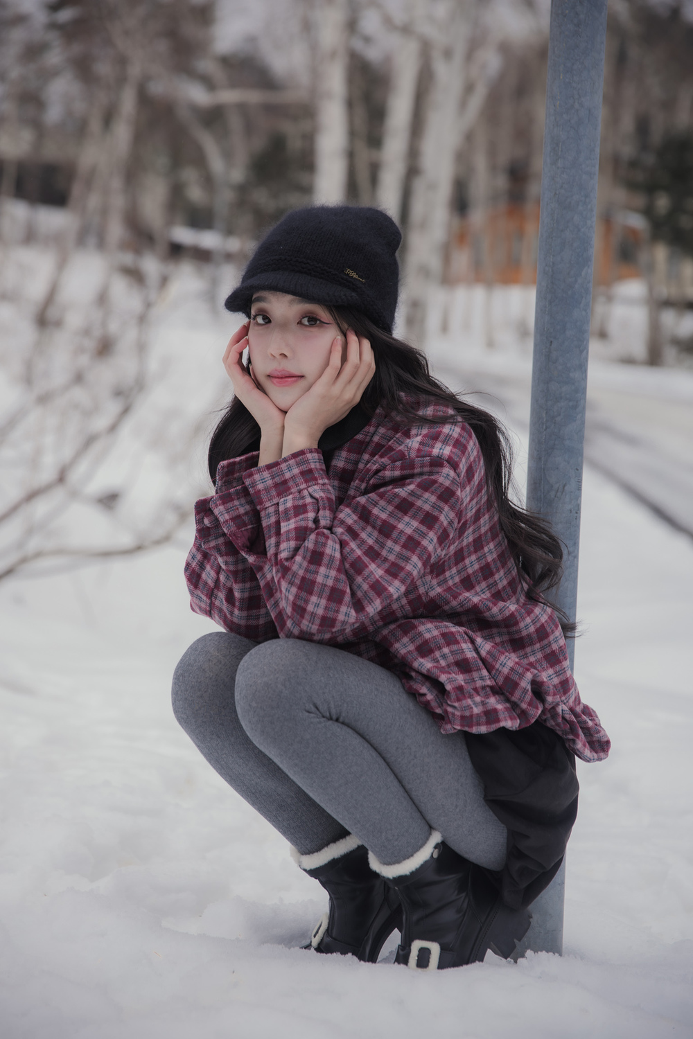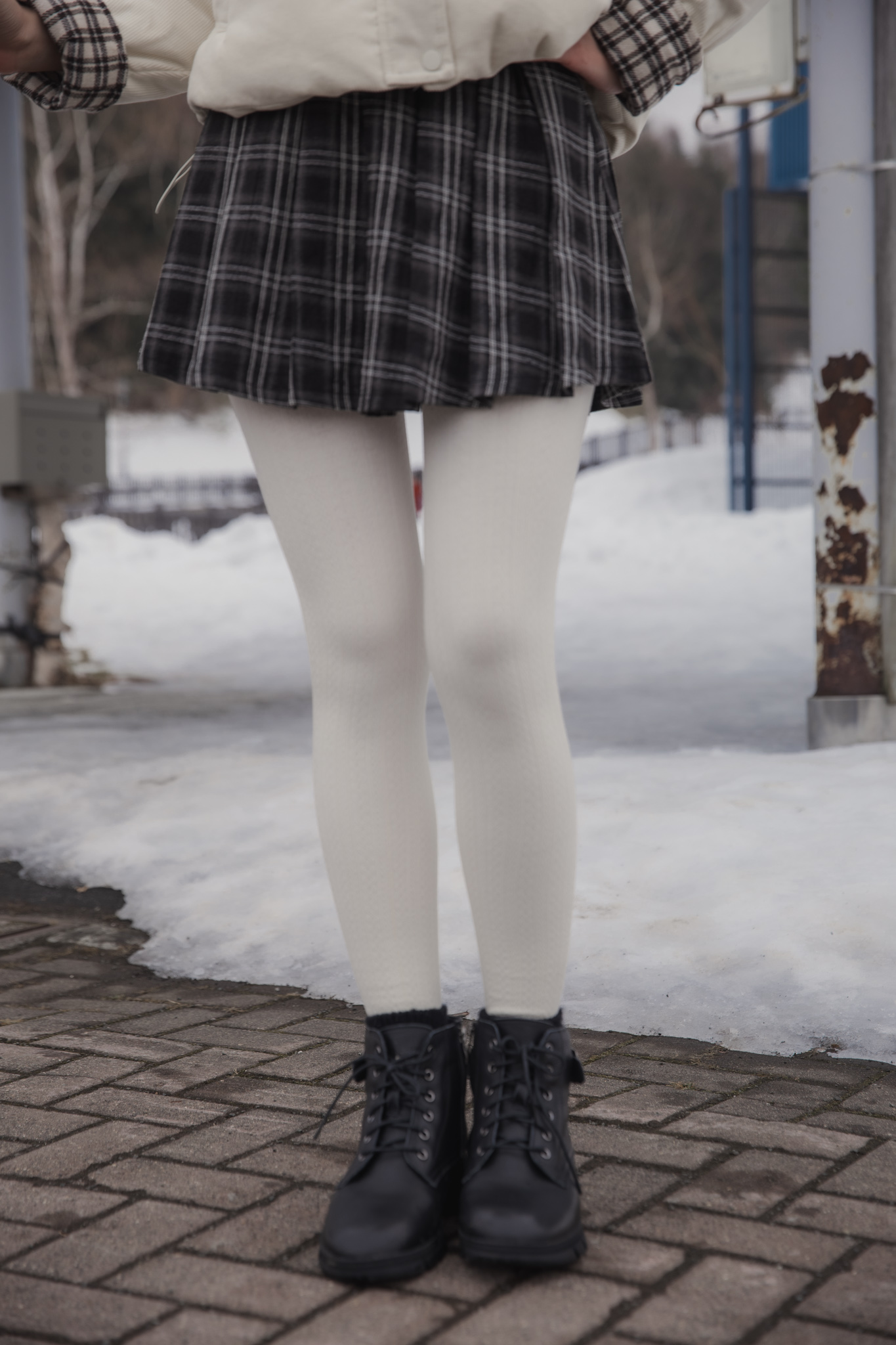 These tights are designed for practical warmth during cold-weather trips. They feature a durable cotton knit exterior with a soft, thin fur lining inside to keep you warm without adding unnecessary bulk to your legs. The vertical cable-knit pattern is functional, helping your legs look leaner and more streamlined in photos.