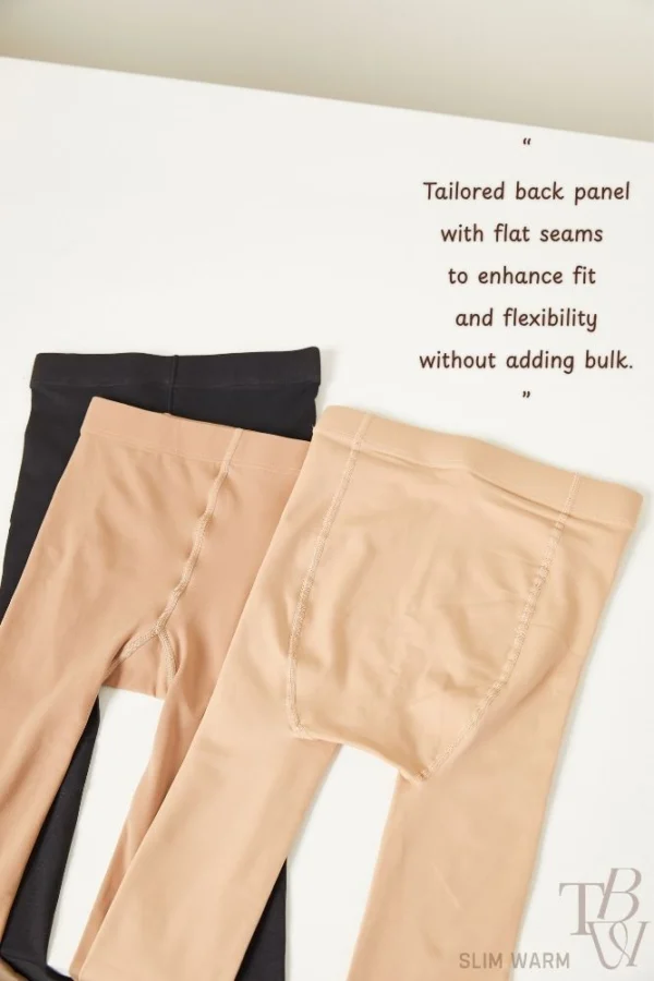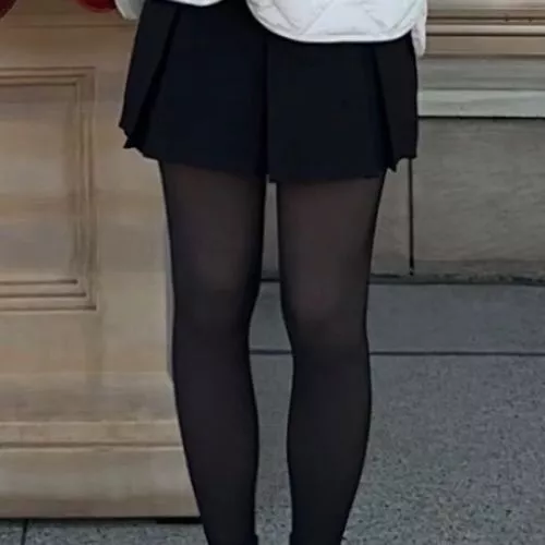 These tights are better than expected. You can wear them to keep warm in the snow. They make your legs look slimmer. They’re not too thick. I really like them.
