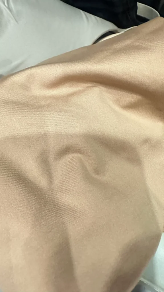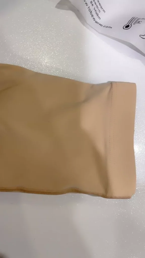 The material is good, very soft, the natural color is smooth on the skin. But will it keep you warm? I’ll have to try it first.