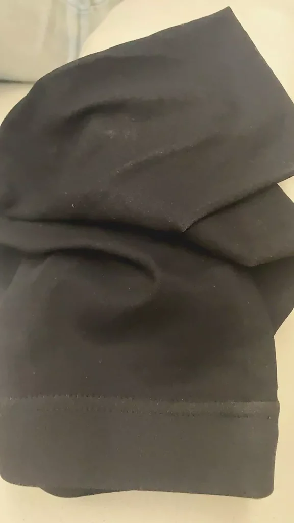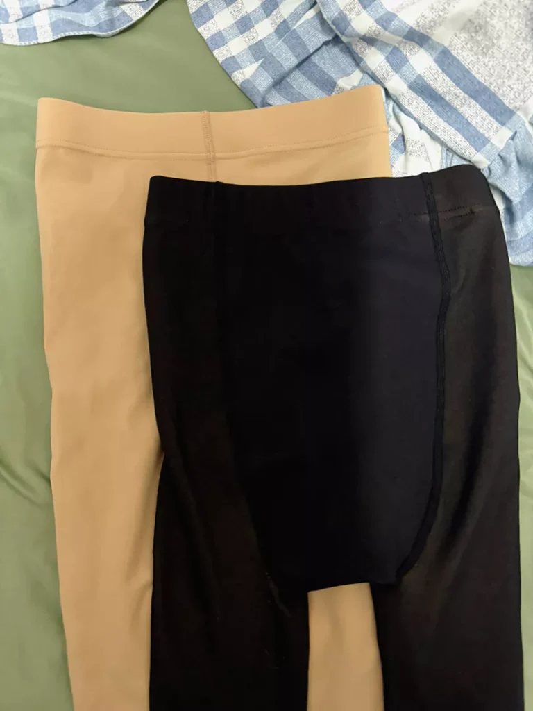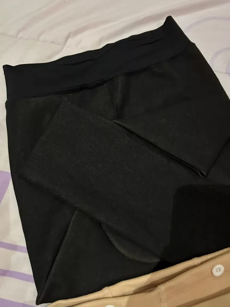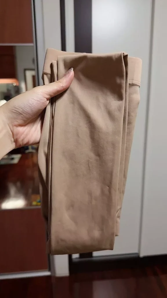 When you put it on, it looks good and doesn’t make your legs look fat. The color is very smooth but makes your skin whiter than your real skin color. The black color looks see-through when you stretch it a lot.