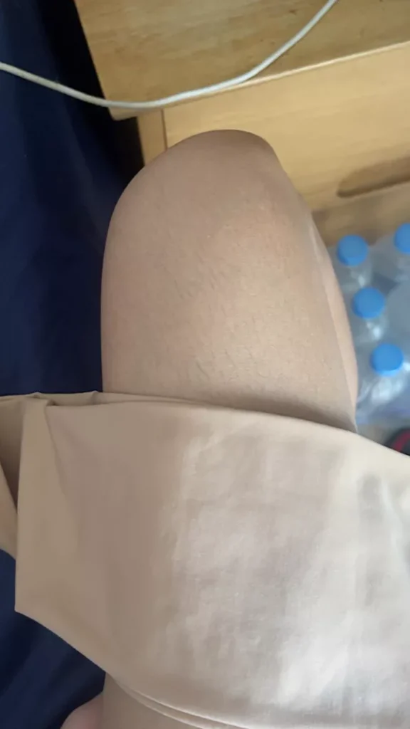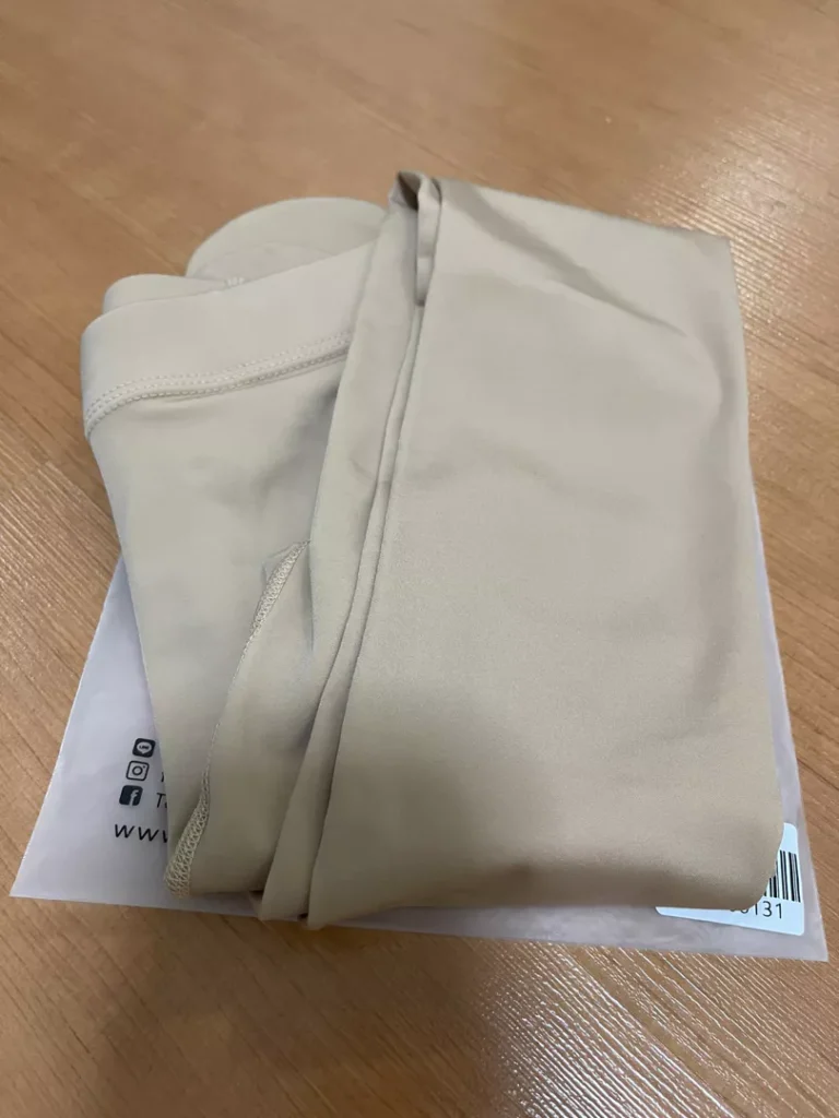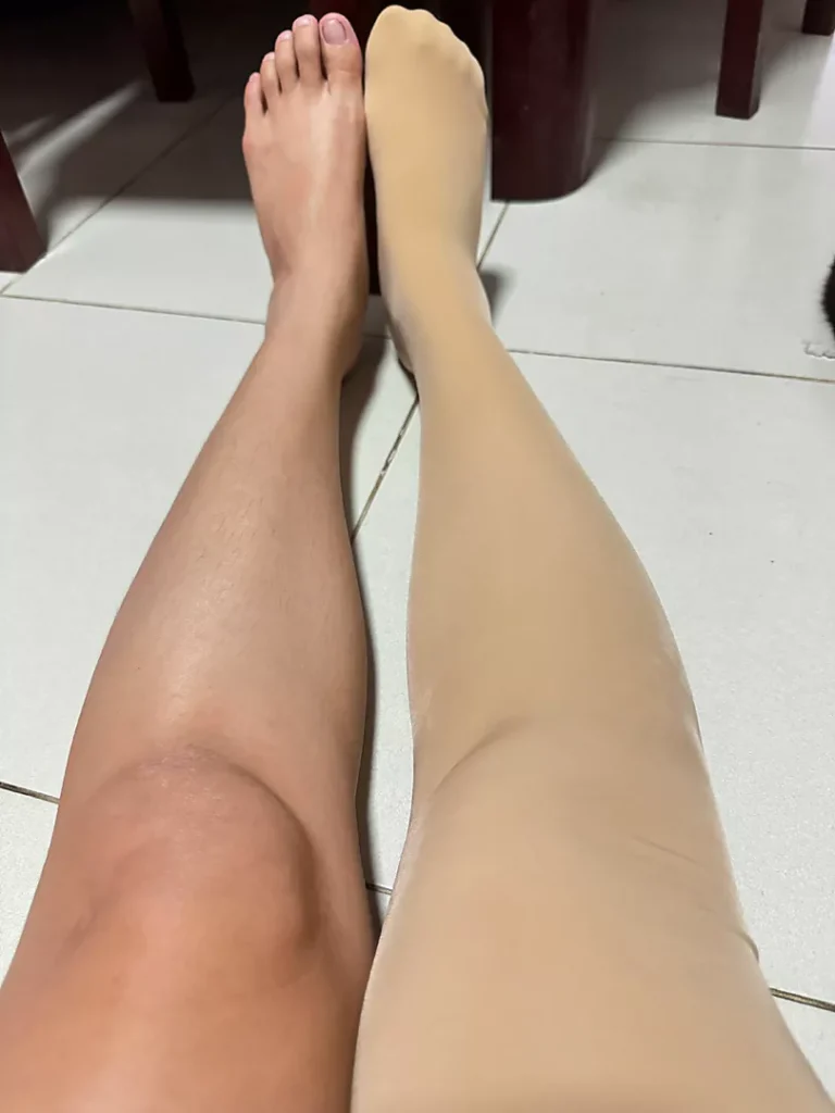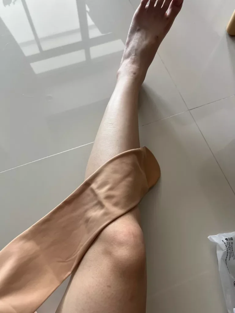 It’s beautiful and I like it. The shape fits my legs well, but it’s not very tight (as shown in the picture, comparing the left and right legs).