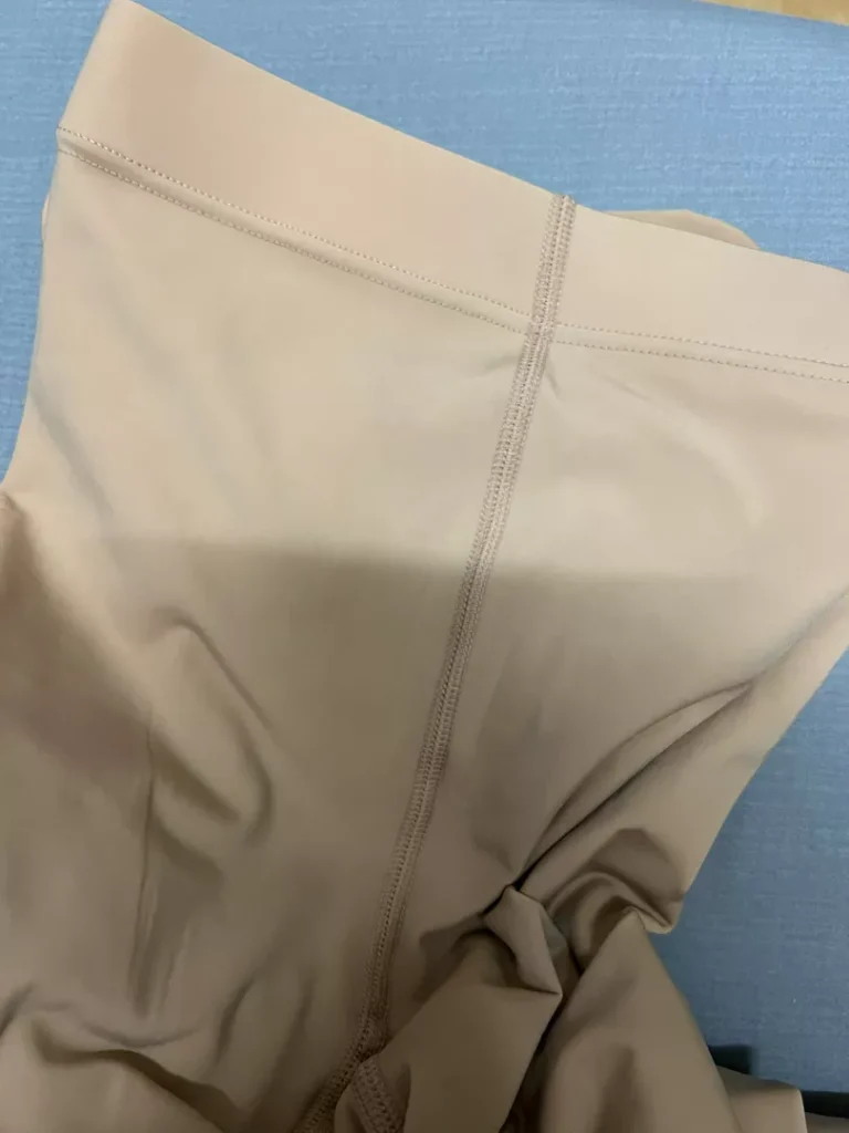It fits well. The fabric is comfortable, not itchy, and not uncomfortable. The color matches my skin tone quite well. I haven’t actually tried it out yet.