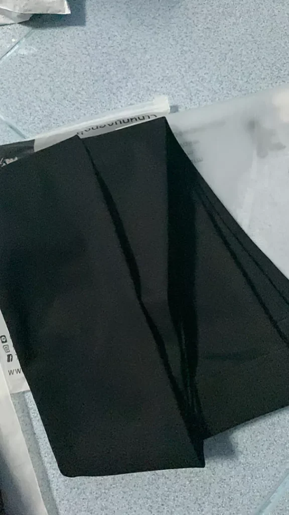 The fabric is good. It’s beautiful. The black see-through color doesn’t look fake. It’s not too white. Fast delivery.