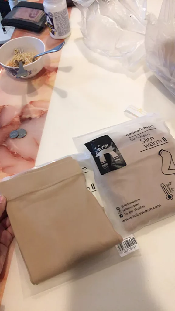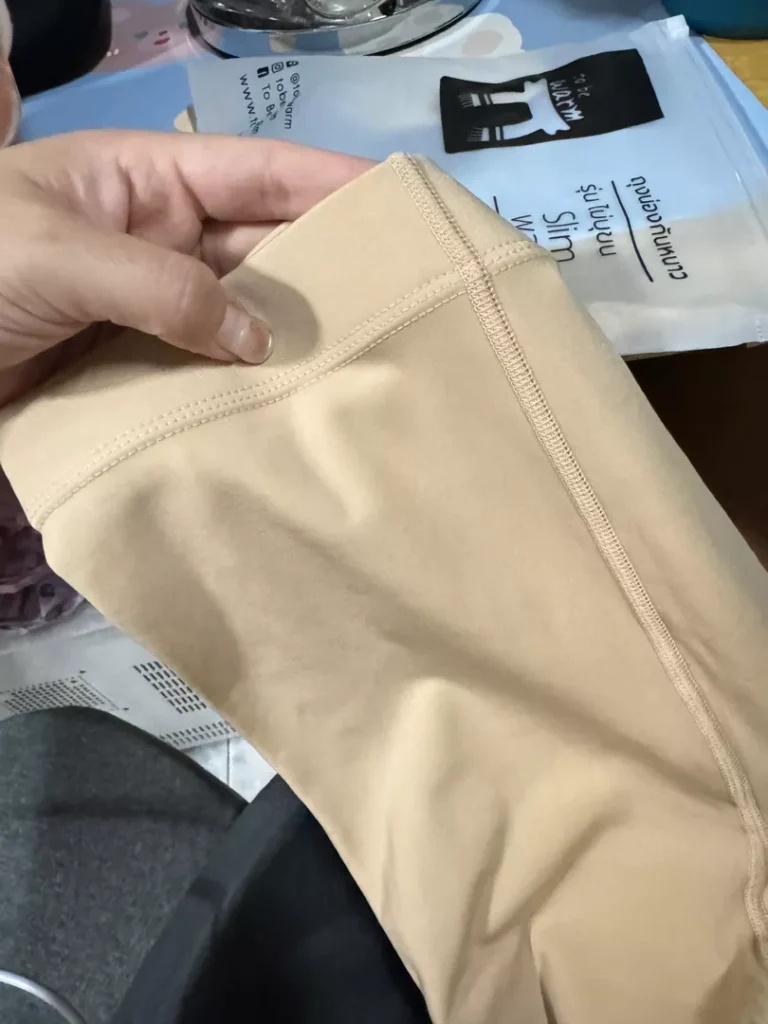 Wearing it in Thailand doesn’t make you feel hot, but if you go abroad, you won’t know. You’ll have to try it again. I feel that it’s a bit tight, meaning it’s a bit difficult to wear. Personally, I’m not fat, but I feel that it’s difficult.