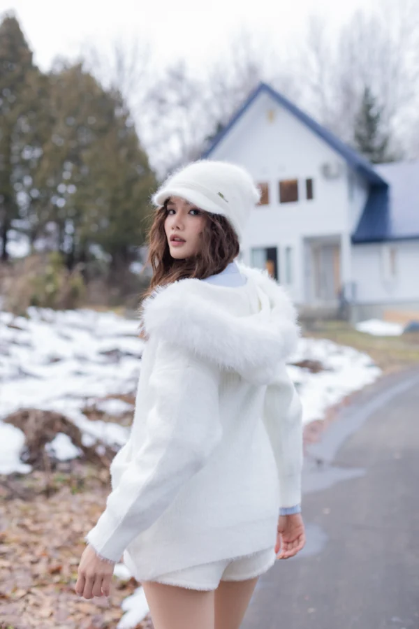 Snow Flurry Knitted Sweater – Mink-feel knit top with detachable fur.