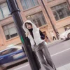 Hooodie Pom Pom Dress – Form-fitting knit dress with a hood and pom-poms.