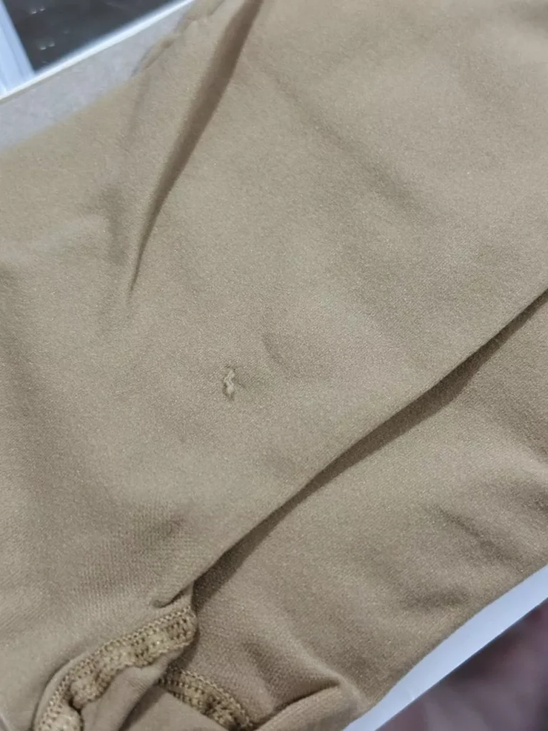 There is a small spot where the thread ran, but the fabric is good, thicker than normal tights, should be able to keep you warm.