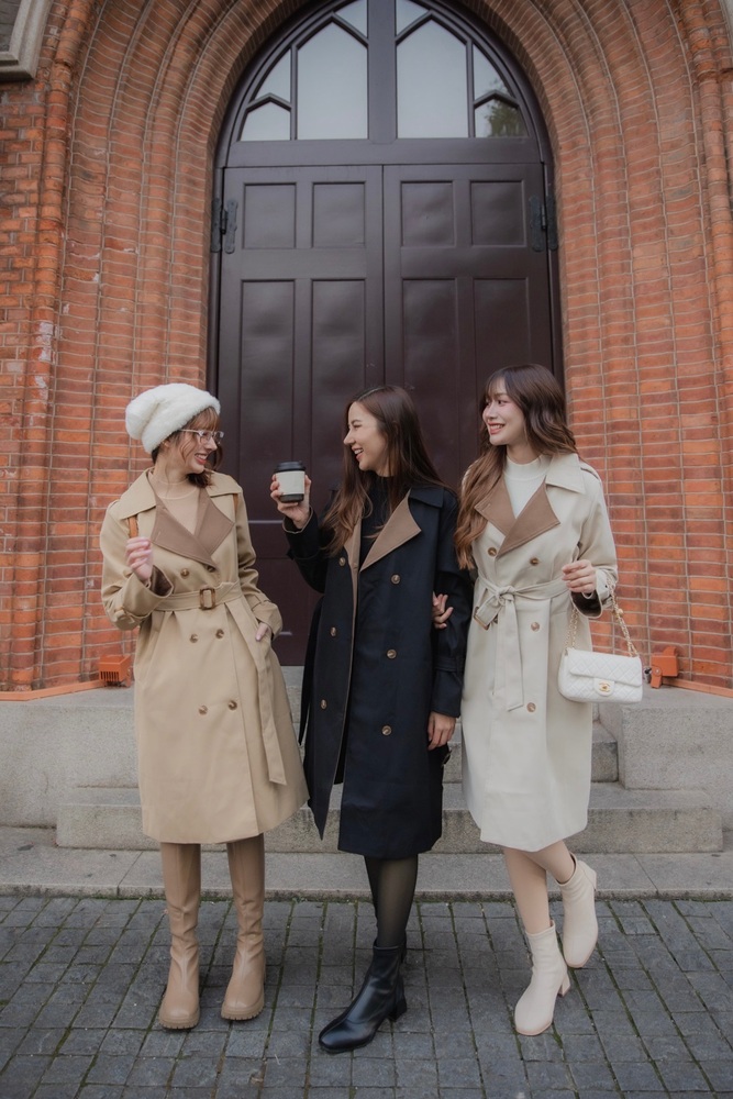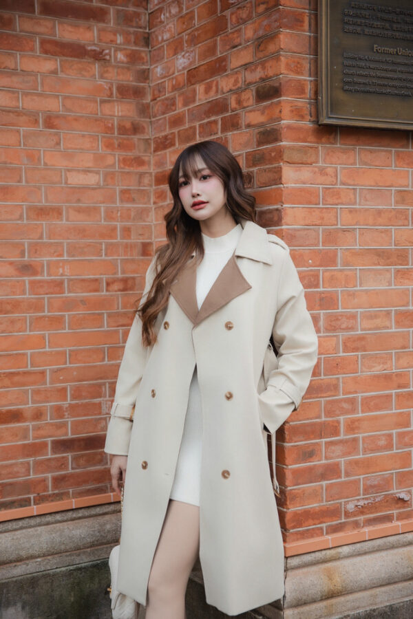 Meet the Timeless Trench Coat! This jacket features unique two-tone details on the collar and edges, crafted from high-quality, lightweight fabric with a soft inner lining. It offers both style and comfort, complete with two side pockets and a versatile belt that can be tied at the waist or back for a perfect, flattering fit. Ideal for chic city explorations and adding sophistication to any travel outfit, ensuring you stay cozy and stylish!