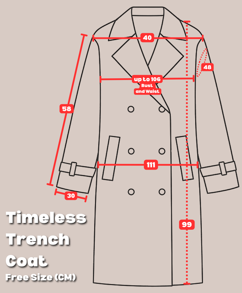 Meet the Timeless Trench Coat! This jacket features unique two-tone details on the collar and edges, crafted from high-quality, lightweight fabric with a soft inner lining. It offers both style and comfort, complete with two side pockets and a versatile belt that can be tied at the waist or back for a perfect, flattering fit. Ideal for chic city explorations and adding sophistication to any travel outfit, ensuring you stay cozy and stylish!
