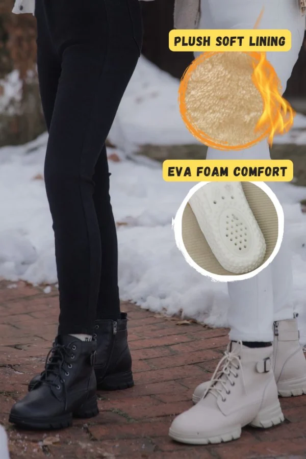 These boots are an excellent choice for cold-weather travel. They are crafted from premium genuine leather and are fully lined with thick, plush fleece that is exceptionally soft and warm. The design combines premium materials with practical engineering, making them a dependable option for diverse winter conditions. With a thick, comfortable EVA foam sole, they provide reliable traction and support for all-day wear in cool to snowy environments.