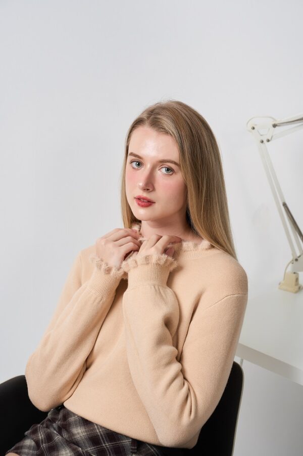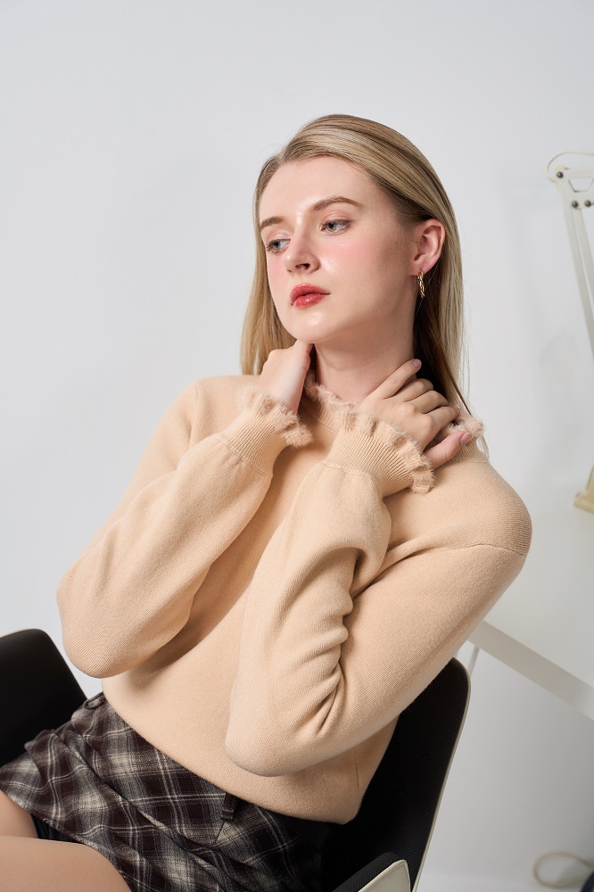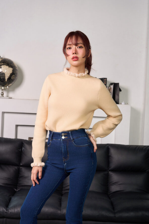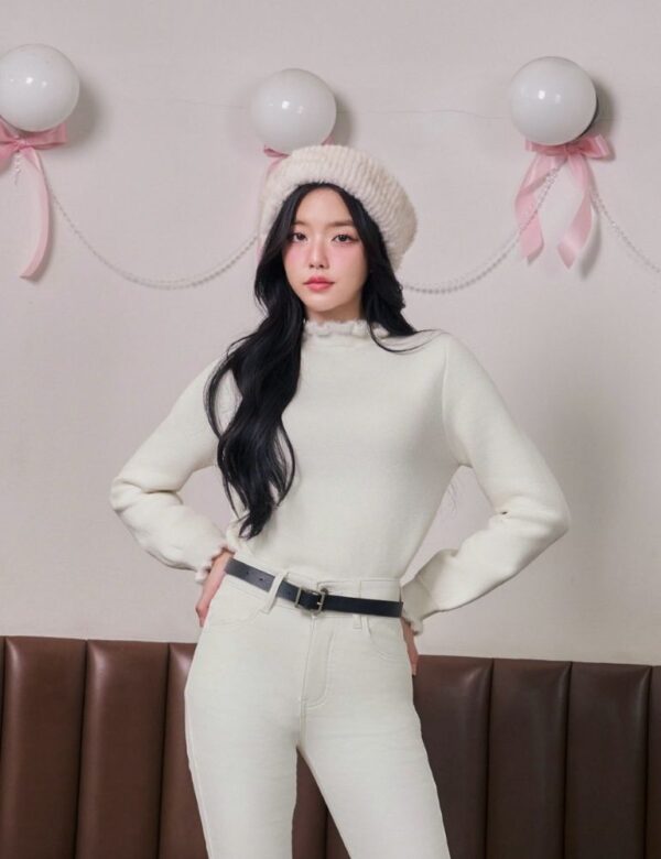 Feel the luxurious softness of this sweater from the very first touch. Crafted with a dense, non-itchy knit and lined with a comfortably thick fleece, it’s designed to keep you warm and cozy. Perfect for a chic winter look, this sweater pairs beautifully with high-waisted jeans or a stylish wool skirt, making it ideal for a city break in a chilly, fashionable destination.