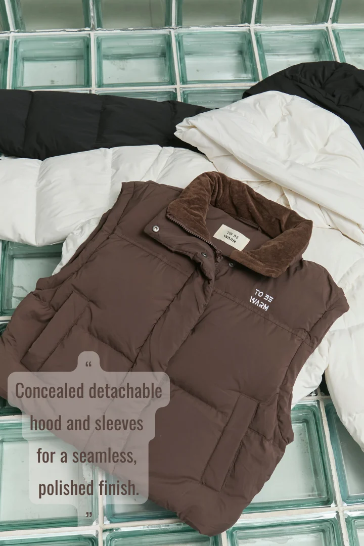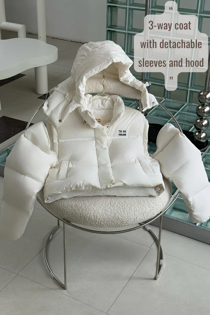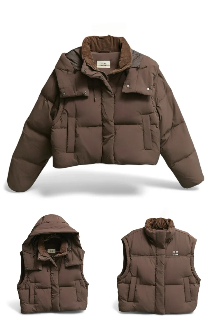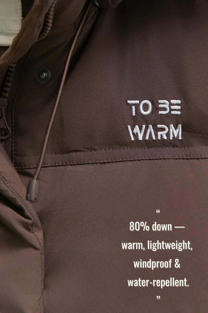 ToBeWarm 3-Way Down Jacket – Wearable from 20°C to -20°C, featuring removable sleeves and hood.