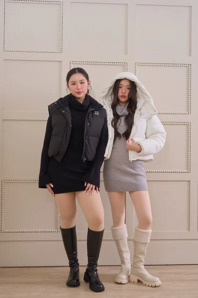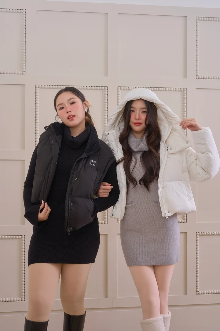 Turtleneck mini dress – Styled as a mini dress or a loose-fitting sweater.