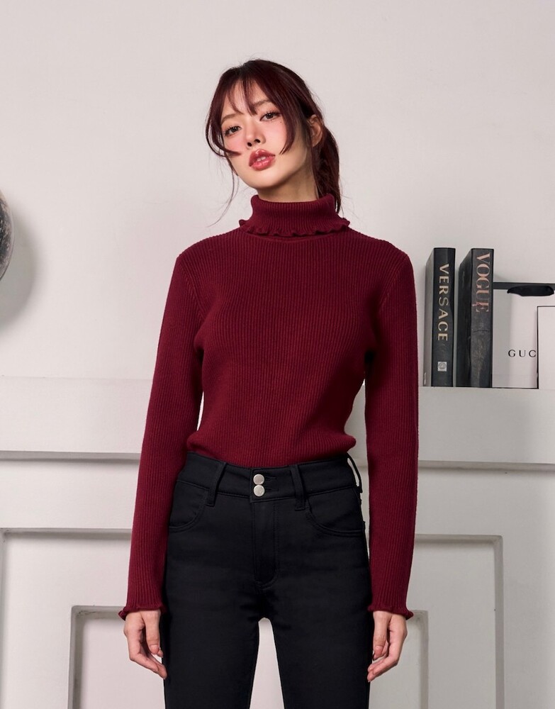 Crafted from soft, non-itchy knit fabric, this turtleneck provides excellent warmth with its dense weave. Its basic yet stylish design is easy to match with various outfits, making it a versatile staple for any wardrobe. The stretchy fabric ensures a comfortable and flattering fit. Pair it with a skirt for a chic look, or layer it under a jacket for extra warmth. This piece is perfect for a cool autumn trip or a cozy day out.