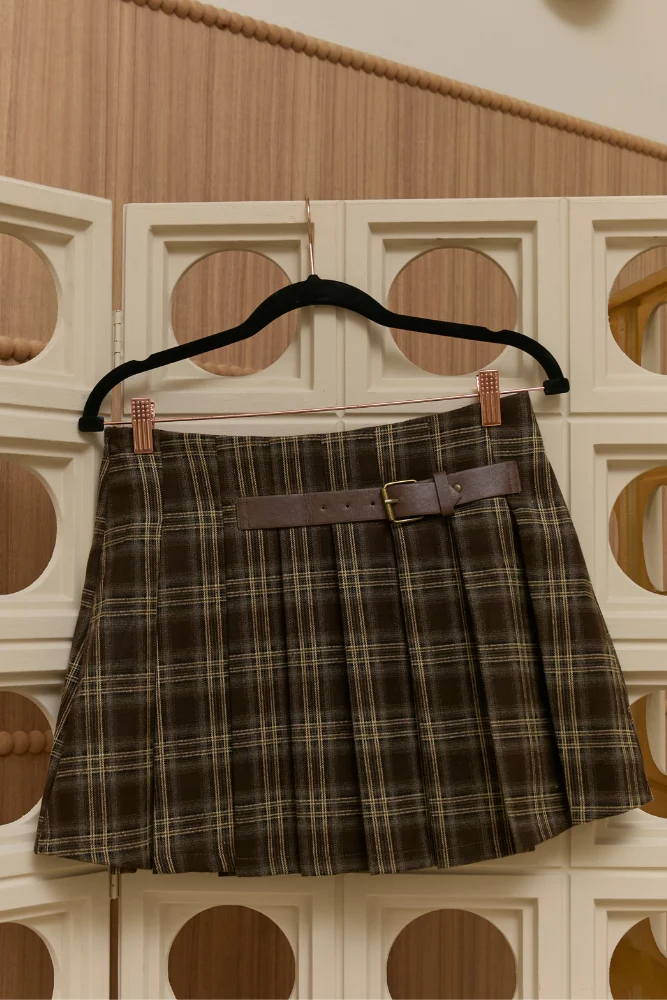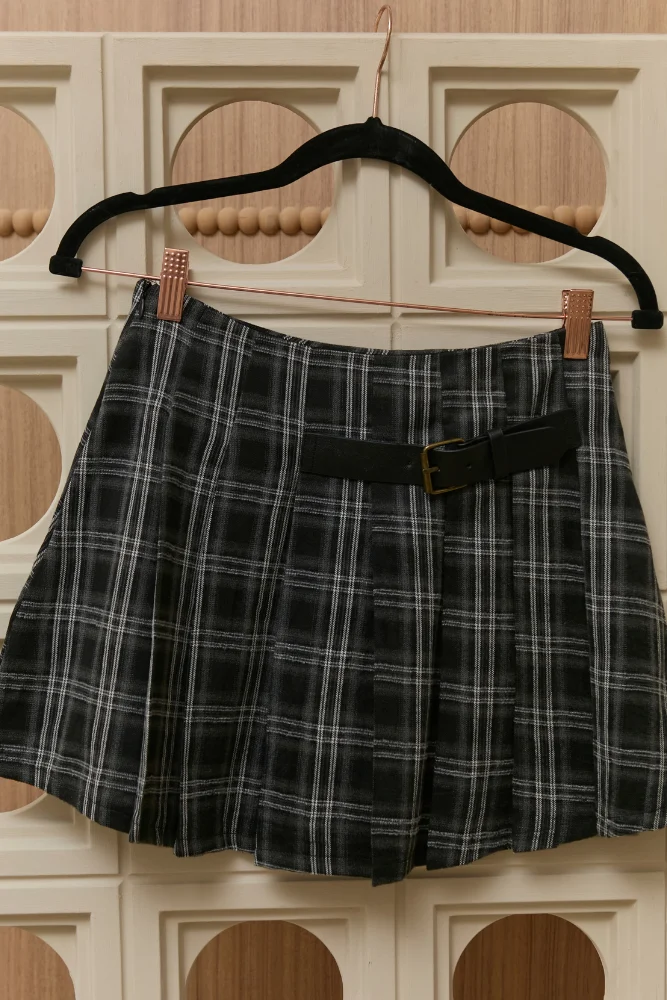 Vintage Checkered Skirt – High-waisted wool blend skirt with built-in shorts.