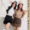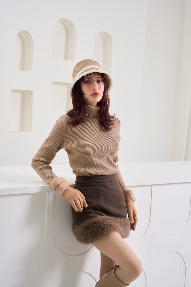 1 × Power Puff Skirt – Chic wool skirt with fur trim and built-in shorts. - Brown, S